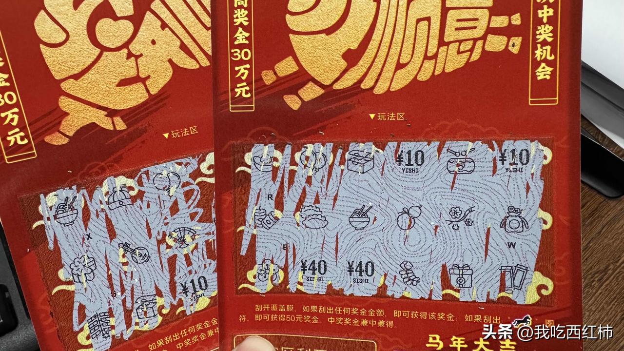 今天我刚好要启动车子离开,突然瞅见地上有个红包皮里面带点绿,我就等路人走过之后捡了起来,没想到真是50元,高兴的跟同事分享哈哈哈哈,我说回去之后我们就去买彩票,然后就有了图二的刮刮乐 我上次捡到钱是在小区的地下电梯口,也是在正月