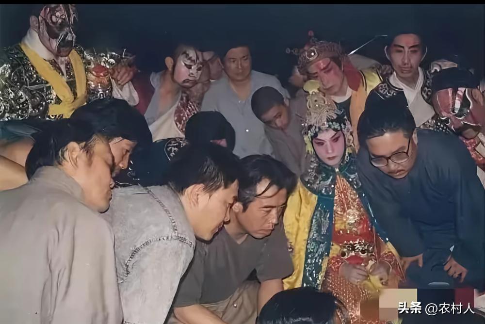 1992年《霸王别姬》拍摄时,陈凯歌、张国荣、摄影师杜可风等人刚刚吃完盒饭,聚在