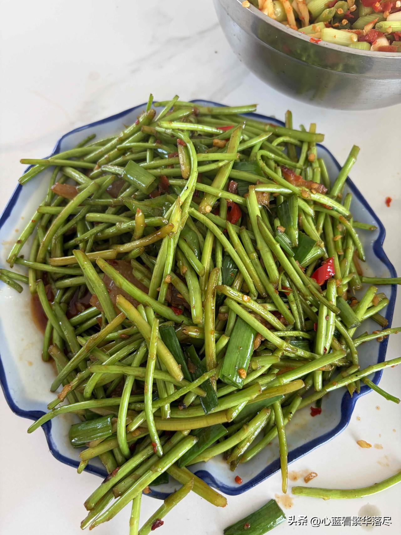 今天中午在我们工厂食堂,吃到了一盘很“特殊”的菜,之所以说这盘菜很“特殊”,是因为这盘菜看起来很像是炒蒜薹,但是吃起来的口感要比蒜薹还要嫩,听食堂做饭阿姨说这种菜在荆州本地叫做黎蒿,也只有南方的个别地方才有这种菜,北方人估计都没有见过这种菜,而且这种菜也只能炒着吃! 真的很好奇这种菜,难道只有炒着吃这一种方法吗?