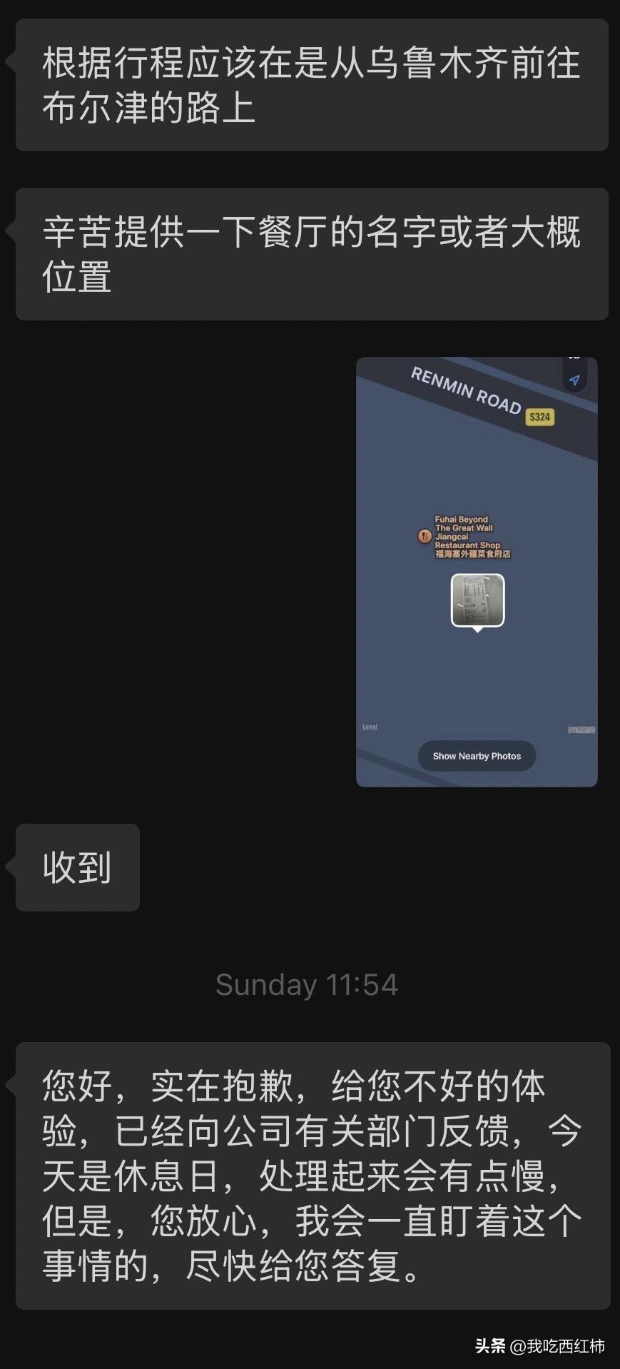 我投诉了北疆一家餐馆,但我有些后悔 从乌鲁木齐到布尔津路上,福海县, 车师傅把我们带到一家餐厅吃午饭, 点菜时,老板一个劲推她们贵的菜, 我们只点了几道相对便宜的,还被老板白眼, 结账时,发现比我们计算的还贵, 一份白米饭38元? 师傅说他不知道餐厅价格是这样的, 但是,师傅吃了一份拌面是没付钱的, 还能因为什么呢? 行程结束后, 我向旅行社投诉了此事, 师傅随后打电话给我说, 希望我不要再继续再追究这事, 要不然他车队就不给他派单了, 电话中我听到他小孩子的哭声, 想到行程中师傅对大家也负责友好, 一家四口生活都靠他在外开车; 我开始犹豫,要不要继续投诉此事?