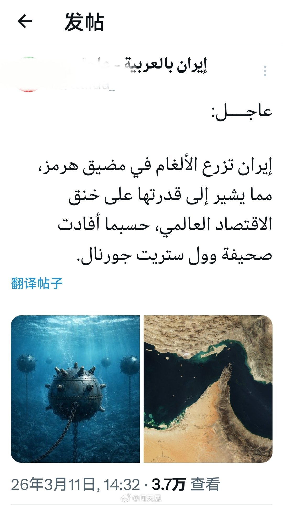 紧急消息:据《华尔街日报》报道:伊朗正在霍尔木兹海峡埋设了水雷,这表明它有能力控制霍尔木兹海峡乃至中东局势。