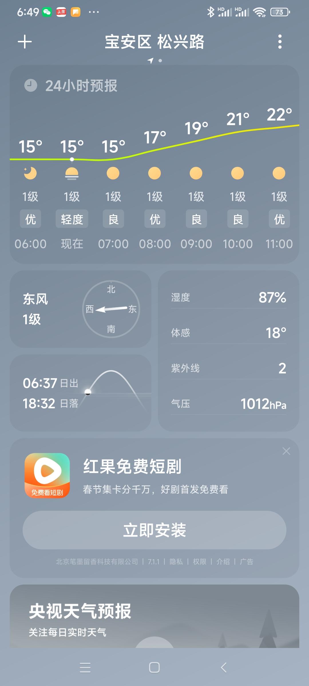 我的今日状态:😁轻松愉快 我这里的天气:☀️晴天深圳今日雾转晴,气温15度到2