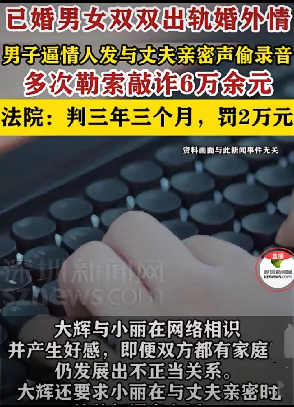 代价惨痛!吉林长春,男子和女子各有家庭,结识网络,发展成情人,男子为求刺激,让女子把她和丈夫亲密时的声音,用微信语音通话发给他,女友照做,不料,男子瞒着女友偷偷录音,事后,男子3年间,陆续问女子敲诈6万多,女子最终报警,法院这样判了。 2022年,一男一女在普通社交群里偶然相识。 一开始只是成年人之间礼貌的闲聊,可聊着聊着,两人都开始倾诉婚姻里的疲惫、委屈与不被理解,慢慢把对方当成了唯一的情绪出口。 深夜的聊天越来越长,安慰越来越暧昧。 明明都有家庭,明明知道不该越界,可在一时的新鲜感里,道德的防线还是悄悄崩塌。 两人瞒着家人,发展成了婚外关系。 女子以为,这只是压抑生活里的短暂喘息。 她不知道,对方从一开始,就布下了让她无法脱身的局。 2022到2023年间,男子的要求越来越出格。 他在女子毫无防备的情况下,偷偷录下了极其私密的语音,悄悄藏在手机深处。 那段录音,不是情意,而是一把对准她的刀。 2023年,温柔的面具彻底撕碎,第一次勒索来了。 男子直接放话:不转钱,就把所有事和录音发给你丈夫,让你全家都知道。 女子瞬间浑身发冷,手脚发软。 她不敢想家庭破碎、亲友议论、孩子受影响的样子。 恐惧压垮了她,她只能偷偷转账,先后转去2万元。 她一遍遍告诉自己:花钱消灾,忍忍就过去了。 可她越退让,对方越贪婪。 更让人齿冷的是,这些钱他一分都没用于家庭,全部用来个人挥霍。 长期被威胁、被拿捏的日子,让她活得心惊胆战,手机一响就浑身紧绷。 她忍无可忍,拉黑对方,删掉所有记录,拼命想逃离这场噩梦。 她以为拉黑就能结束。 她错了。 2024年,男子再次找上门,态度更加嚣张,张口就要8.6万元。 威胁的话更加刺耳:敢不给,就让你和家人都不得安宁。 女子被恐惧彻底困住,白天心神不宁,夜晚彻夜难眠,一闭眼就是身败名裂的画面。 在持续的精神压迫下,她再次妥协,又分两次转出1.5万元、2.8万元。 三年时间,她前前后后被勒索6.3万余元。 每一笔钱,都是在恐惧、屈辱与无助中交出的封口费。 她像被困在无形的牢笼里,不敢说、不能说、无处可逃,一天天被拖进更深的黑暗。 直到精神濒临崩溃,她才真正清醒: 退让换不来安宁,沉默只会换来更狠的压榨。 她鼓起全部勇气,向丈夫坦白了一切,没有隐瞒,没有辩解。 在家人的理解与支持下,她走进派出所,选择报警。 2025年8月,长春市南关区人民法院审理此案。 法庭查明:男子以非法占有为目的,多次以曝光隐私、威胁家人等方式勒索财物,数额巨大,已构成敲诈勒索罪。 一审判处: 有期徒刑三年三个月,并处罚金人民币二万元。 男子不服上诉。 二审审理后认定:事实清楚,证据确凿,量刑合法,驳回上诉,维持原判。 从一时越界,到被人拿捏; 从默默转账,到勇敢报警; 从暧昧关系,到罪犯与受害人。 三年时光,没有赢家。 只有两段被伤害的信任,两个受重创的家庭,和一场法律给出的沉重结局。 欲望开了头,懦弱续了篇,贪婪收了场。 这不是虚构故事,是真实判决里,每一个字都带着重量的现实。 守住边界,守住底线,才是对自己和家人最好的保护。 消息来源:网络公开内容,本文配图/视频素材来自网络,仅用于纪实分享与社会观察,如有侵权请联系删除,谢谢!