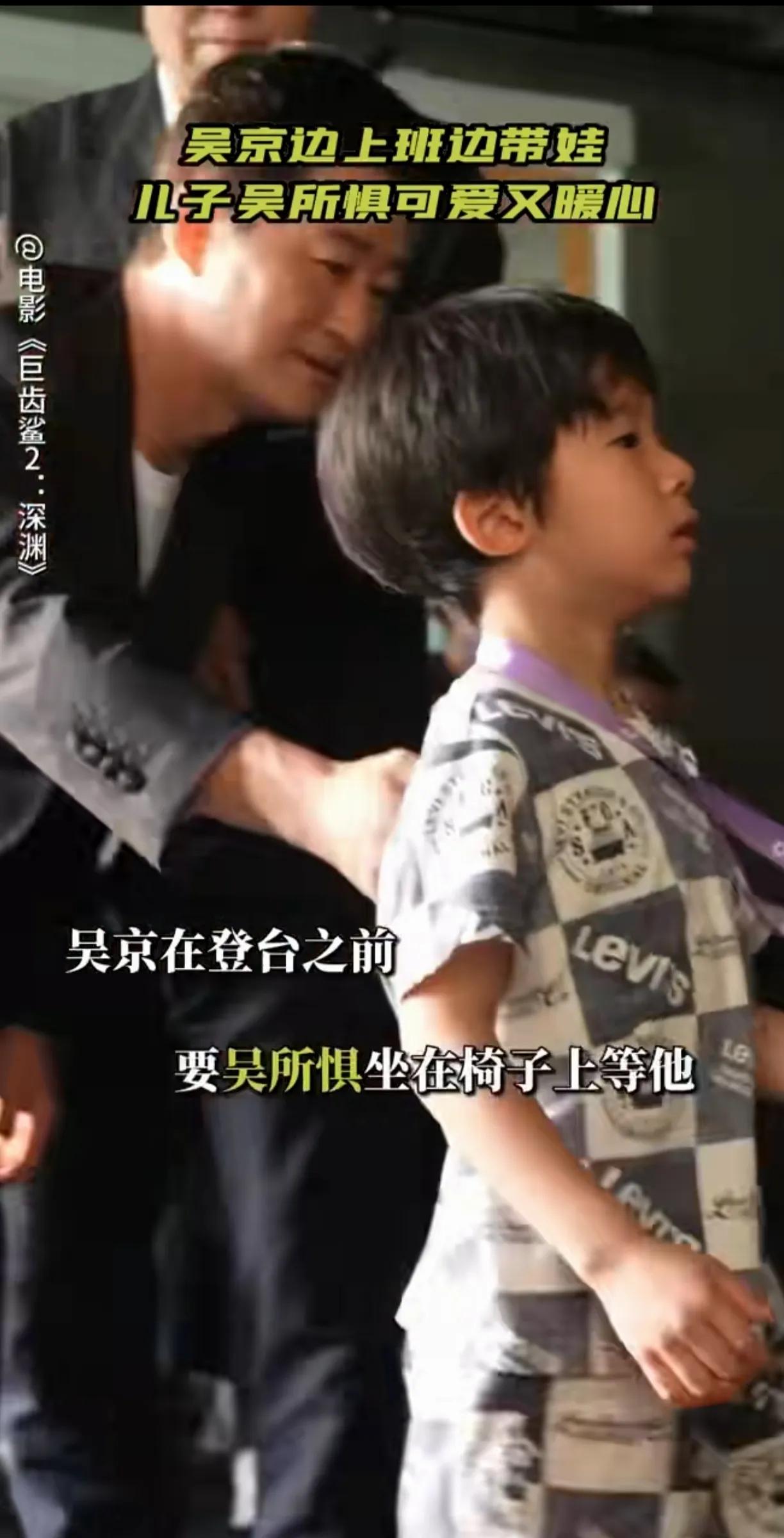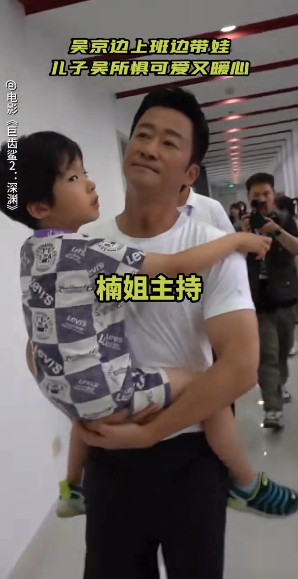 吴京儿子长得像爸爸也像妈妈,很帅气的小男孩。 吴京抱着儿子,这傲娇的表情,一看就是慈父,疼爱孩子的表情藏不住。