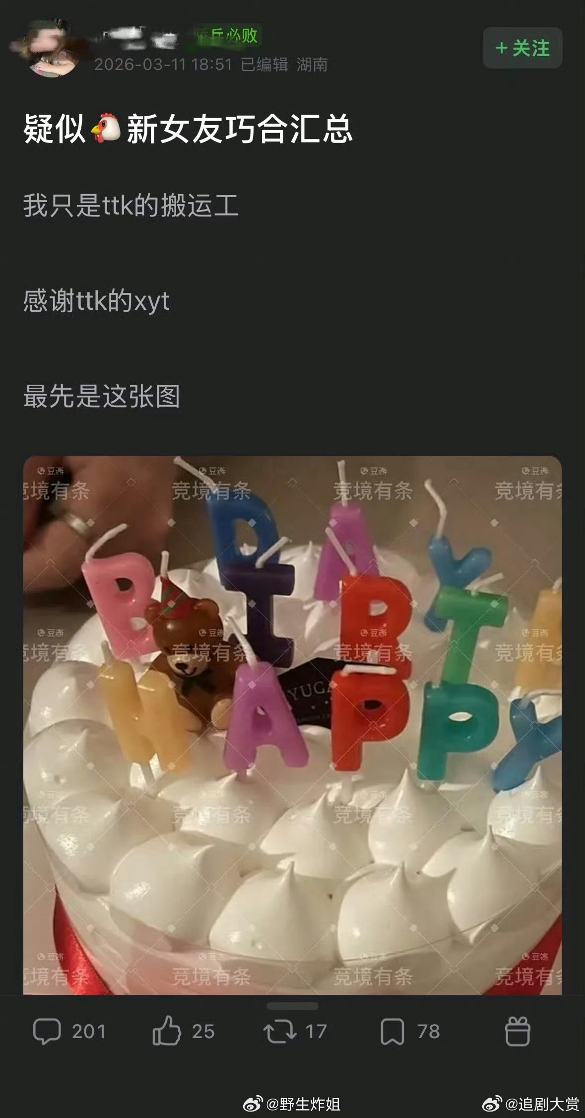 Rookie生日新女友卡点发了生日蛋糕