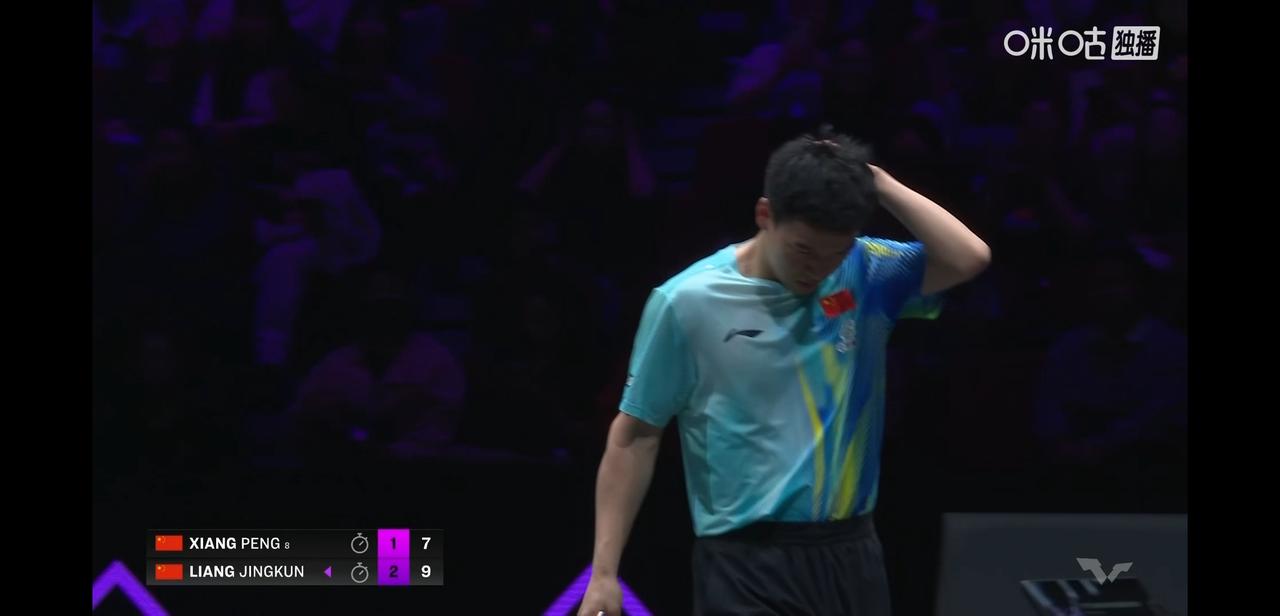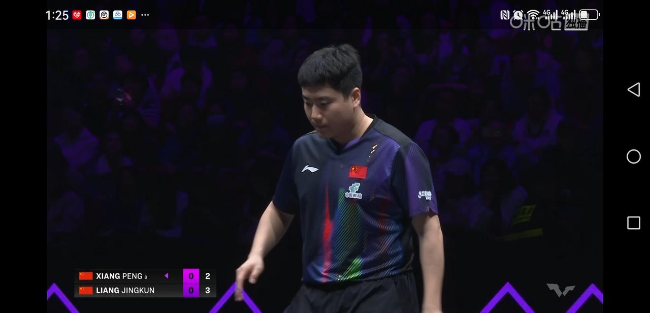 重庆冠军赛男单1/16决赛, 国乒内战梁靖崑对战向鹏。 今天梁靖昆是以大比分3:1晋级十六强 四局比分分别是8:11 ,11:8,11:7,11:7, 这是梁靖昆在休整一个多月以后的首场比赛,不错[赞]。 向鹏也消沉了很长一段时间了, 看得出来对这次晋级也是非常地渴望。 但除第一局外, 没能限制住梁靖昆, 稳定性稍差点, 今天运气也不那么好, 年轻人还要加油。 恭喜梁靖崑晋级。