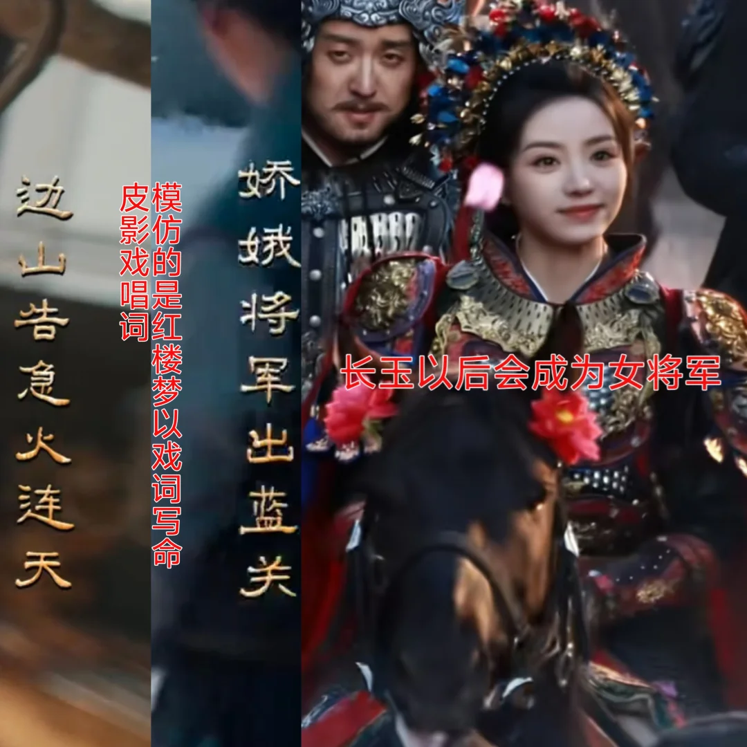 1⃣️先看开头的皮影戏唱词“边山告急火连天,娇娥将军出蓝关”,模仿的是红楼梦以戏词写命运,说的是长玉以后会成为女将军。