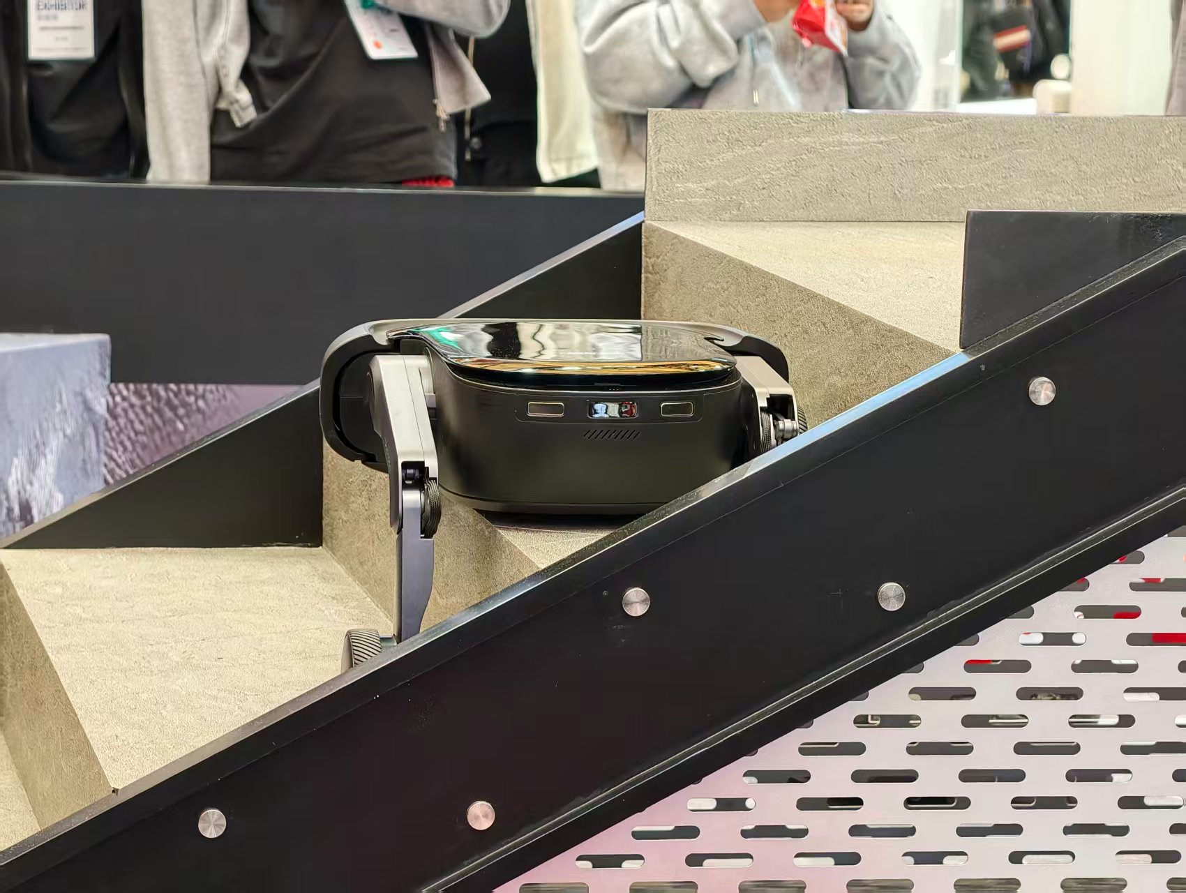 每条轮腿独立具备伸展、提升、升降三个自由度,可模拟人类步态进行迈步、支撑交替与灵活转向,清洁范围更广效率更高,在工作过程中,机载传感器实时扫描台阶高度与几何结构,AI即时计算通过策略:一条轮腿支撑、另一条迈步,滚刷全程不停;遇到拐角侧移通过,异常高度及时调整,危险边缘自动止步,胜任更多工作。