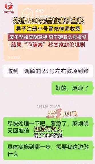 安徽芜湖,男子背着妻子偷偷花出去4500元后,担心万一被妻子发现,就注册了一个小号,伪装成律师,以咨询为由,向该小号转账4500元。但三无小号却被妻子当成骗子,为了打消妻子的怀疑,男子只能硬着头皮去报案,给民警上演了一场“诈骗案”秒变家庭伦理剧的闹剧。 安徽芜湖,派出所里上演了一场啼笑皆非的闹剧。一名男子急匆匆冲进派出所,声称自己被“律师”诈骗4500元,言辞恳切、一脸委屈,恳请民警帮他追回损失。 可民警没查多久就发现破绽,这场看似严肃的“诈骗案”,瞬间变成荒诞的家庭伦理剧,男子的奇葩操作,让在场民警忍俊不禁。 事情发生在近日,芜湖一名男子平日里在家还算老实,却总爱偷偷花钱,不敢让妻子知道。前段时间,他一时没忍住,背着妻子花了4500元,花完才后知后觉慌了神。 他知道妻子精打细算,对家里开支管得极严,每笔钱的去向都要问明白,这4500元不是小数目,一旦被发现,少不了争吵甚至更大矛盾。 男子左思右想,急得像热锅上的蚂蚁,终于想到一个“好主意”:注册社交小号伪装成律师,以“咨询法律问题”为由,给自己小号转账4500元,就算妻子发现转账记录,也能谎称是付的咨询费,顺利蒙混过关。 说干就干,男子立刻用手机注册了一个社交小号,改了个听起来专业的昵称,简单完善资料营造律师形象。可他急于求成,账号既没实名验证,也没完善相关信息,更没发布任何动态,是个妥妥的“三无账号”,一眼看上去就十分可疑。 做好伪装后,男子用主号给小号一次性转账4500元,特意备注“咨询费”,还删掉了自己主号的转账记录,本以为天衣无缝,却没料到妻子会通过银行卡账单查到这笔转账。 几天后,妻子整理手机账单时,发现了这笔陌生转账,看着毫无实名信息、无可信标识的收款账号,瞬间起了疑心,认定丈夫被骗子诈骗了。妻子又急又气,逼着男子赶紧报警追回损失。 男子看着妻子焦急严肃的模样,彻底慌了,深知谎言一旦戳穿后果不堪设想,只能硬着头皮假装委屈,顺着妻子的话说自己被“律师”诈骗,随后急匆匆赶到派出所报案。 到了派出所,男子装出一脸无辜,向民警“描述”被诈骗的经过,声称自己因有法律问题,在网上找到这位“律师”,约定4500元咨询费,可转账后对方就失联了,自己才意识到被骗。 民警听完觉得不对劲:正规律师4500元一次性咨询费并不常见,且男子所说的“律师”账号无实名、无专业资质,太过可疑。民警当即调取转账记录和账号信息核查,很快就水落石出。 民警发现,所谓的“律师”小号,注册时间就在男子偷花4500元当天,注册设备、登录IP都和男子报案用的手机一致,显然两个账号都是他本人使用。面对证据,男子再也装不下去,红着脸如实交代了一切。 他坦言,自己根本没被诈骗,4500元是偷偷花掉的,注册小号、伪装律师都是为了骗妻子,没想到妻子当真,还逼着自己报警,最后把自己逼到进退两难的地步。 据悉,近期社交平台三无账号乱象频发,有人用未实名小号隐瞒行踪、编造谎言,但像男子这样,用小号自导自演诈骗戏码欺骗妻子的,十分少见。 民警又好气又好笑,对男子进行了批评教育,告知他这种行为浪费警力,遇事应主动和妻子沟通,不能靠撒谎解决。男子低着头连连认错,说自己再也不会做这样的傻事。 随后,男子给妻子打电话,如实承认了偷偷花钱、伪装律师、自导自演报案的全过程。妻子又气又笑,虽生气丈夫撒谎花钱,但也觉得闹剧可笑,最终选择原谅了他。 对此,你们有什么看法,欢迎评论留言~