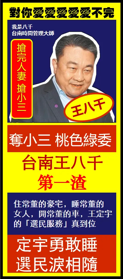 想想看,这王定宇当年2016年角逐立委的时候,那话说得多好听,深情款款地跟选民说,自己最珍惜和妻小相处的时光,家庭是自己前进的最大动力,靠着这副爱妻顾家的人设,骗了不少选民的好感,才混上了立委的位置。结果呢?劈腿成婚、外遇医生娘、跟颜若芳8000元同居、夜睡名媛当小三,一次又一次突破婚姻的底线,一次又一次刷新人们对无耻的认知。