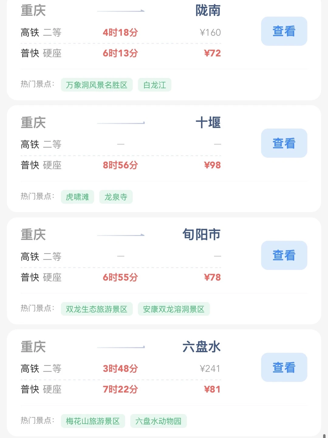 重庆出发 100块的火车票能去这些城市旅游! 帮重庆的打工人和学生党整理了一份重庆出发100块火车票就能去的旅游城市名单 大家可以看一看有没有自己想去的城市 找个时间可以叫上家人朋友们出去旅游呀[色色R]