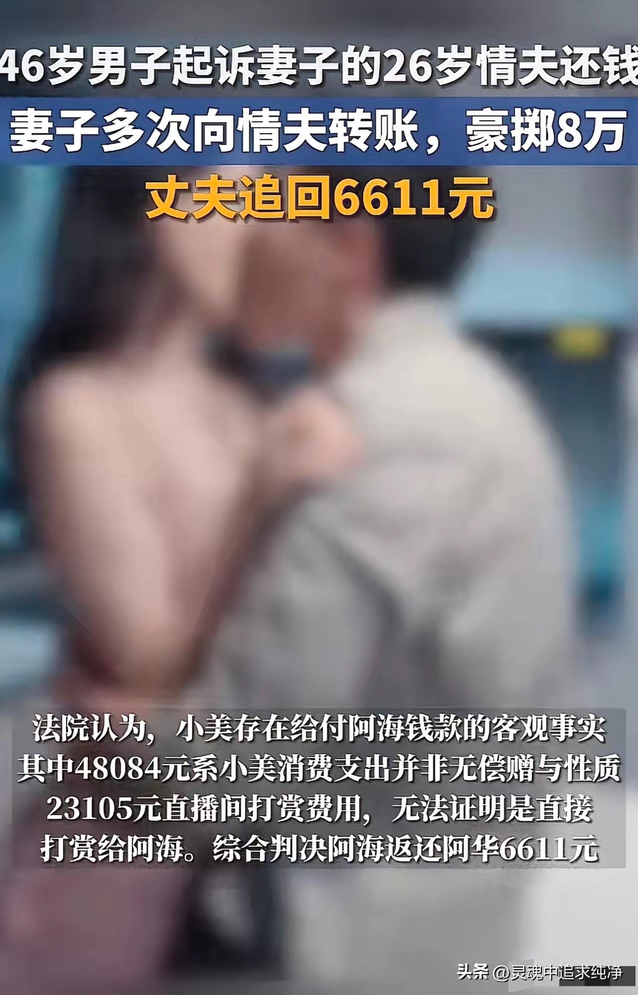 “太炸裂!”辽宁,一40岁已婚女子,在KTV看上26岁小伙,便谎成自己单身,还当场给小伙转账1216块,事后两人发生关系并经常幽会,女子为小伙花了8万多!女子46岁丈夫得知后大怒,要求小伙还钱却遭拒,双方闹到法庭,法院判决令人意外! 夫妻婚内的财产本就属于双方共同所有,任何一方都不能私自赠与他人。 女子瞒着丈夫向外人转钱,从法律和情理上都站不住脚。 小伙明知对方有家庭还接受钱财,面对追讨还摆出理直气壮的态度。 丈夫一边承受感情伤害,一边还要为追回财产四处奔波。 身边的人议论纷纷,有人指责女子不忠,也有人觉得小伙贪图钱财。 婚姻里的忠诚和财产的边界,在利益面前变得格外脆弱。 法律的判决讲究证据与规则,却难以抚平家庭破碎带来的伤害。 道德的约束往往比法律更难坚守,人心的欲望很容易冲破底线。 看似简单的钱财纠纷,背后藏着婚姻信任的崩塌与人性的考验。 守住婚姻的责任,守好家庭的财产,从来都不是一句轻松的话。