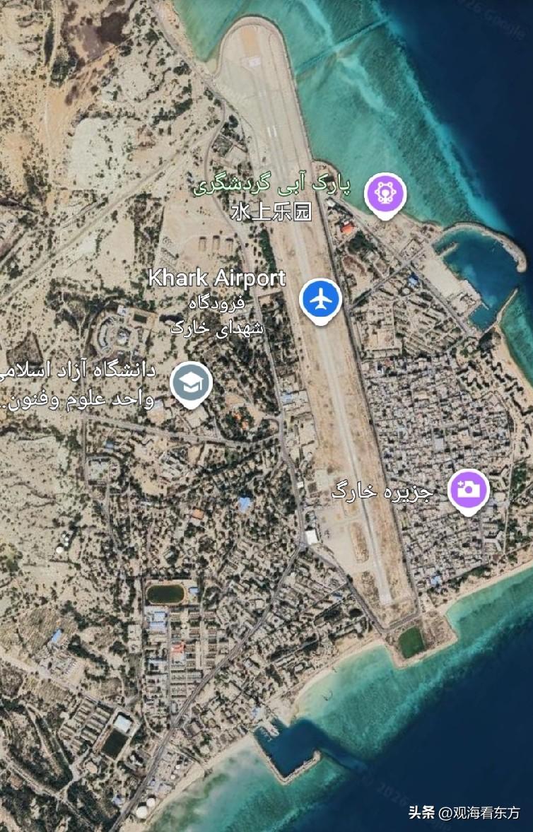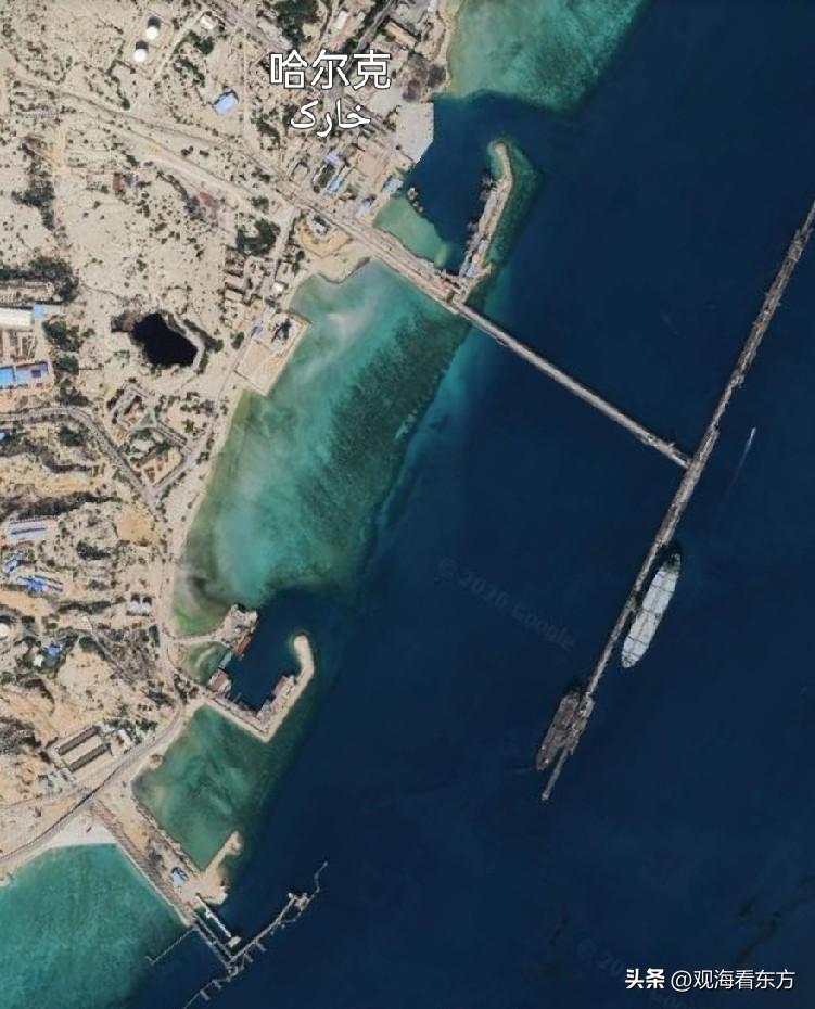 下图标注的红色气泡位置就是特朗普凌晨宣布美军攻击的伊朗哈尔克岛。这座岛位于波斯湾最北端——湾角的顶点位置。这座岛上有一个成熟的配备输油管道的码头,伊朗90%的原油就是由这里运出的。特朗普说只打击了军事设施,没碰石油设备。其实这座岛只有部分防御设施,并没有太多伊朗驻军,因为被伊拉克、科威特、沙特、巴林、卡塔尔、阿联酋环抱,周边全是美军基地,放置多少军事设施都不够看。岛上还有一座机场,看样子也是民用居多。不知道美军有没有炸毁码头,真要是炸毁了,伊朗石油可能就真出不来了。伊朗海岸不算短,但是适合修建港口的输油码头却不多,因为大部分海岸线都是浅水沙滩。最大港口阿巴斯港主要处理干货、杂货,油轮也能停,码头泊位却不多,且没有规模储油罐,原油并不是这个码头强项。我一直好奇美军炸了阿巴斯港,可为什么不轰炸伊朗的原油码头,后来才想到特朗普开战前可能幻想着彻底掌握伊朗,到时候油也是美国的,自然不能轰炸石油码头——否则到时候运不出来。现在应该不再幻想掌控伊朗政权了,但依然因为害怕原油价格继续上涨,还是不敢炸。
