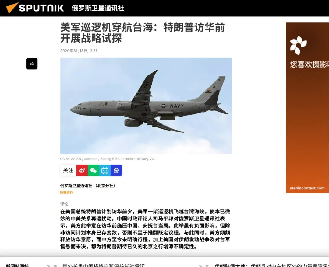 当然,还有一个重要因素或者更会实质性影响特朗普的访华行程,即美国早已宣布的一笔巨额的对台军售,已经受到中国强烈而明确的反对,现在也不排除美国政府为了实现总统访华,并能与中国达成新的经贸协议,而不得不推迟那笔巨额的对台军售的执行。而派出“海神”反潜巡逻机穿越台湾海峡,其实也是做给台湾当局看的,给赖清德先输出一剂安慰剂。