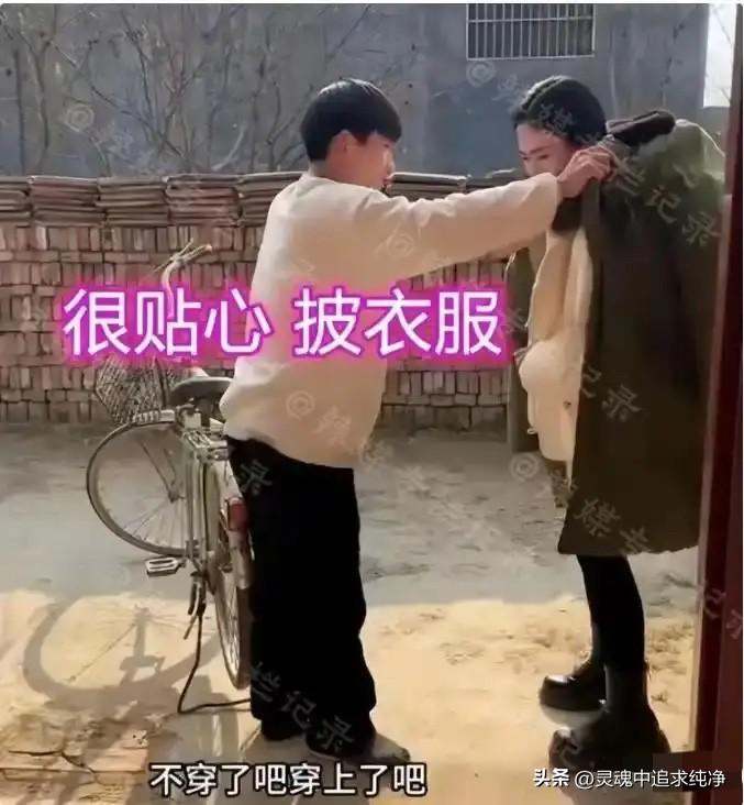 河南一小伙相亲,穿个军大衣,骑个破自行车就去了,网友都笑他,这打扮谁能看上啊。 结果人家姑娘不仅没嫌弃,还开开心心陪他骑车兜风。小伙也实在,怕姑娘冷,直接把自己的军大衣脱下来给她披上。 冬天的风很凉,军大衣裹住的却是一份实打实的暖意。 姑娘没有嫌弃这身旧衣服,反而觉得这是对她的真心照顾。 路上的尘土飘起来,小伙骑得很慢,生怕颠簸冻着她。 两个人骑得不快,风里的笑声却传得很远。 网友的嘲笑只停留在屏幕上,可这两个人实实在在遇见了美好。 漂亮的皮囊终究是一时的,舒服的心意才是能吸引人的根本。 小伙用最朴素的方式表达了在乎,姑娘用最坦然的状态回应了他。 两个人在寒风里靠得很近,比任何名牌外套都更能代表幸福。 这种简单又纯粹的感情,反而比各种精致包装更打动人。 原来最难得的,不是穿得多体面,而是愿意把对方放在心里。农村大男孩相亲 农村搞相亲