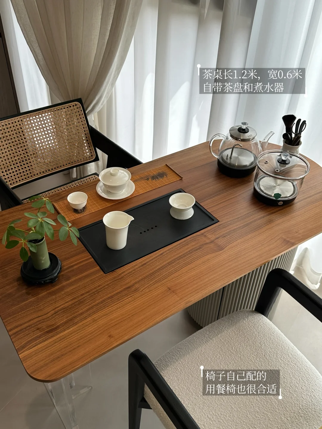 [种草R]我家是直接用餐椅做为茶椅,风格上完全匹配,平时使用也很方便。