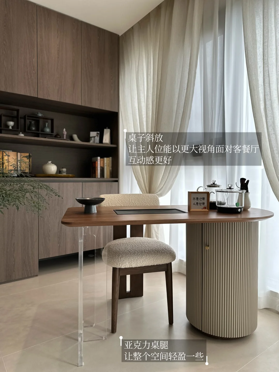 [种草R]建议选择亚克力桌腿,从客餐厅看过去,这个茶室与客厅融合得恰到好处~,不会显得存在感过强和拥挤。