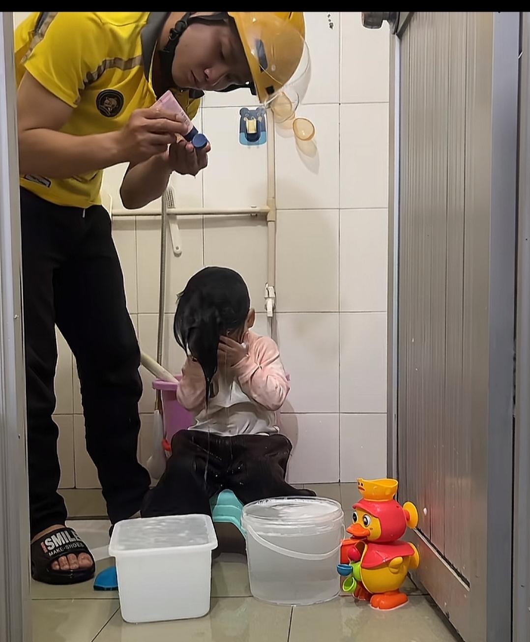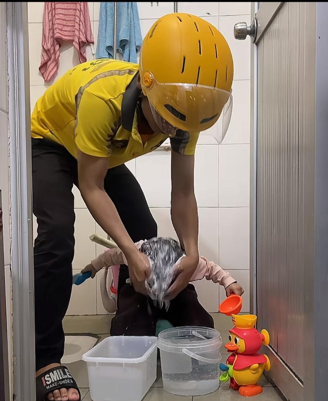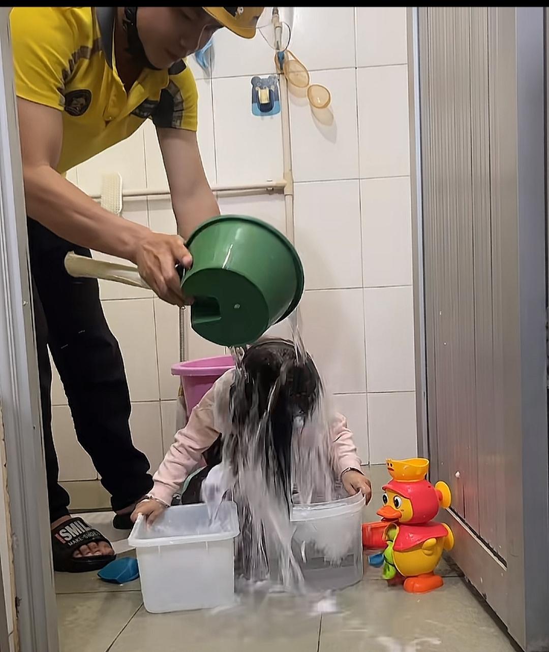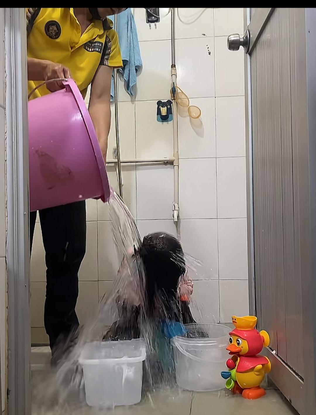这个爸爸给女儿洗头简直要命。先是一大瓢水对着女儿小脑袋浇下去,抹上洗头液后,爸爸的一双大手直接在小脑袋上用力搓,那小脑袋被搓的很有节奏的一上一下,左摇右摇,让人看着感觉十分难受。十几秒后,又一大瓢水浇下去把泡沫冲走,这个时候,爸爸拿出护发素给小脑袋上头发抹上,难得体现一下爸爸的细心。还没来得及感叹,爸爸提起大桶子剩下的水直接对着小脑袋冲,画面看着十分不适!一个大人也忍受不住这么大水量得冲击呀! 然而,妈妈发出来的原声视频,画面却十分欢乐,小女孩一点都没觉得难受,相反,她还很欢乐,嘴巴不停的配合着发出搞笑的声音。原来,小女孩很享受了! 估计这家家庭氛围十分友爱搞笑吧!