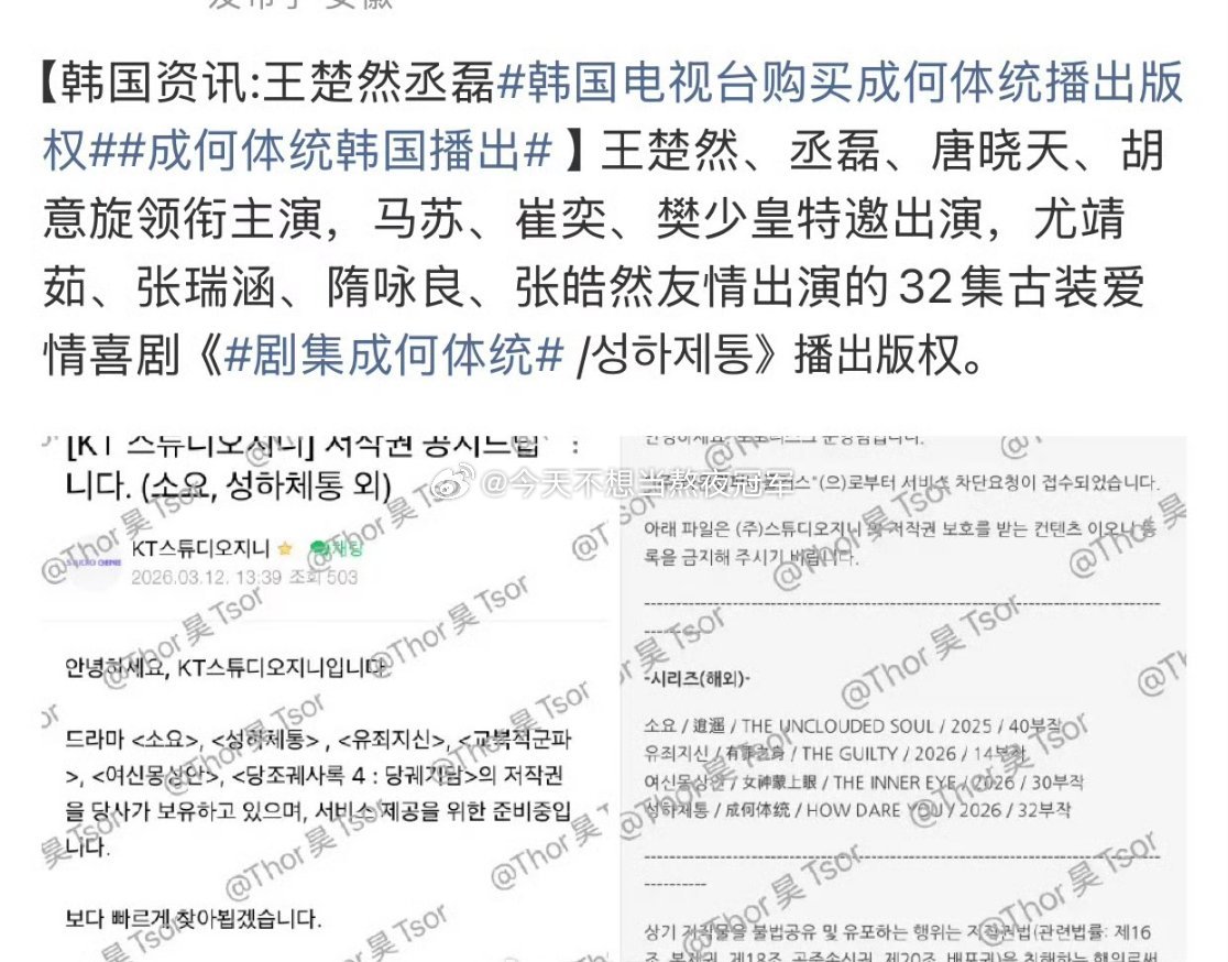 王楚然、丞磊《成何体统》刚播完,版权就卖到韩国了