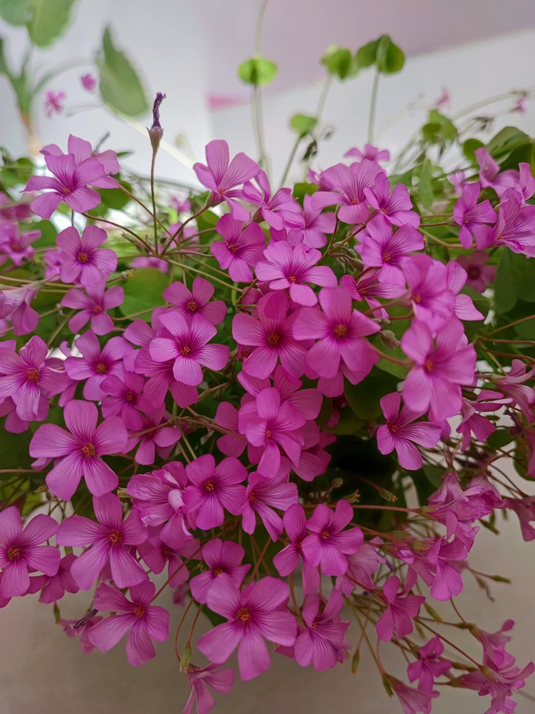 富贵人家才能把一些名贵的花养好养活吧!才真正称得上是花开富贵![作揖]我家只要买点好一点的花必然夭折[捂脸],可能它们不喜欢普通人家![黑线]我家只要养普通的花,一定枝繁叶茂,生机勃勃。这些炸浆草是俺老头在网上买的,开始是一盆,爆盆才分出来的,现在是第二年,已经满屋烂漫了。这种花挺好养活,但🈶一样烦人,每天得打扫地面一层掉落的枯萎的花。[大笑]友友们喜欢炸浆草吗?