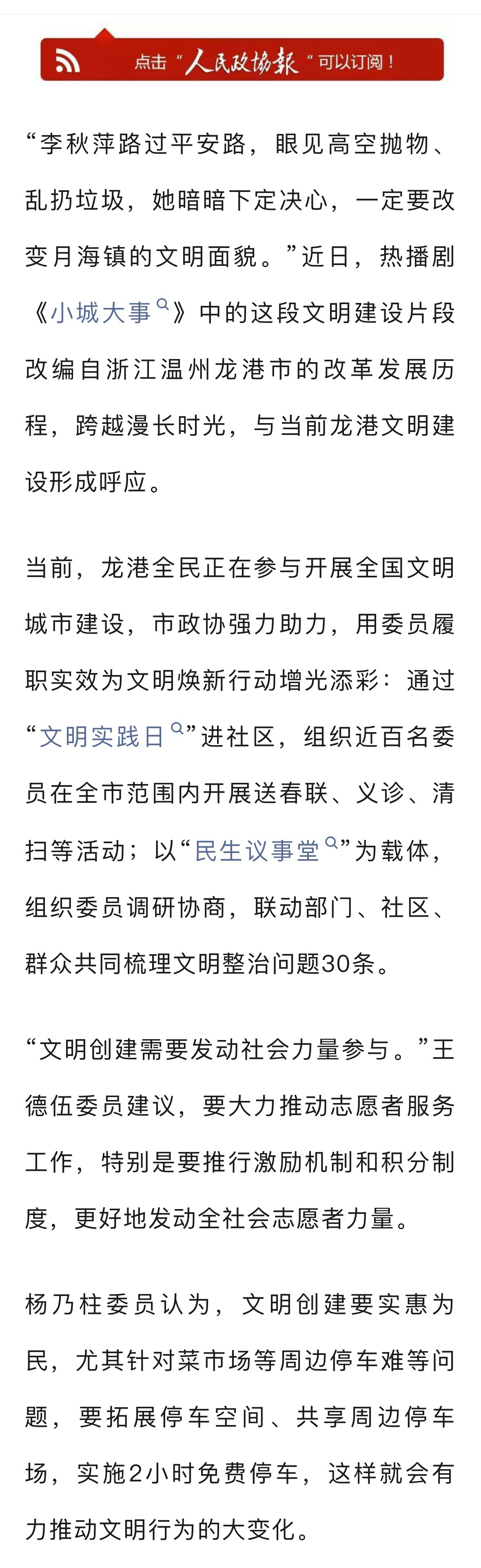 人民政协报:重磅报道赵丽颖《小城大事》龙港更多委员结合小城大事以不同方式推进文明建设❗️