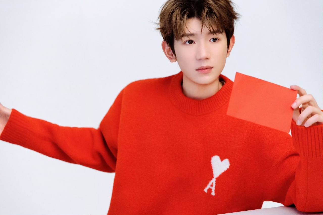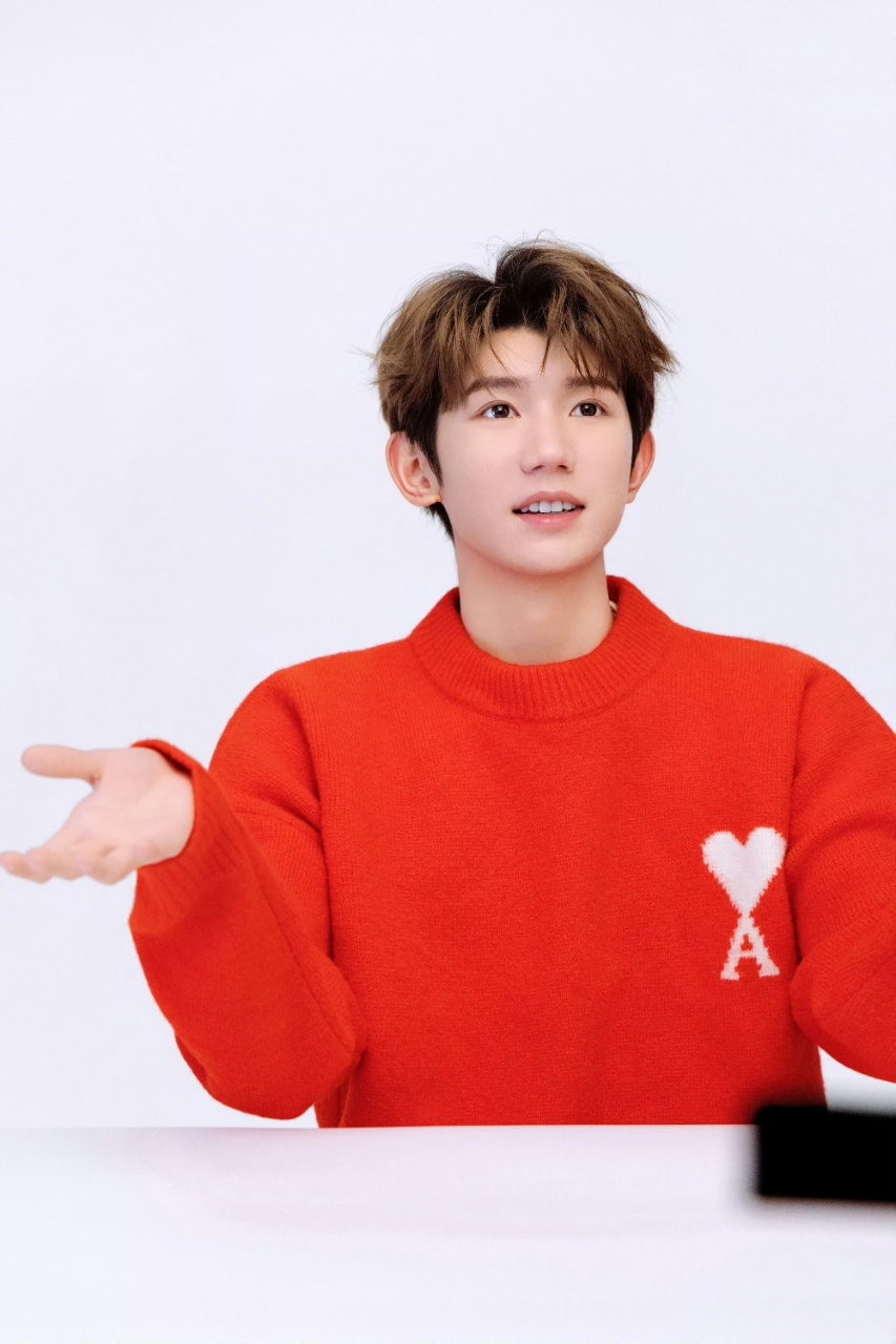 王源王源春天的心意王源红色毛衣照 一起约定过,在春天相见,期待南宁~