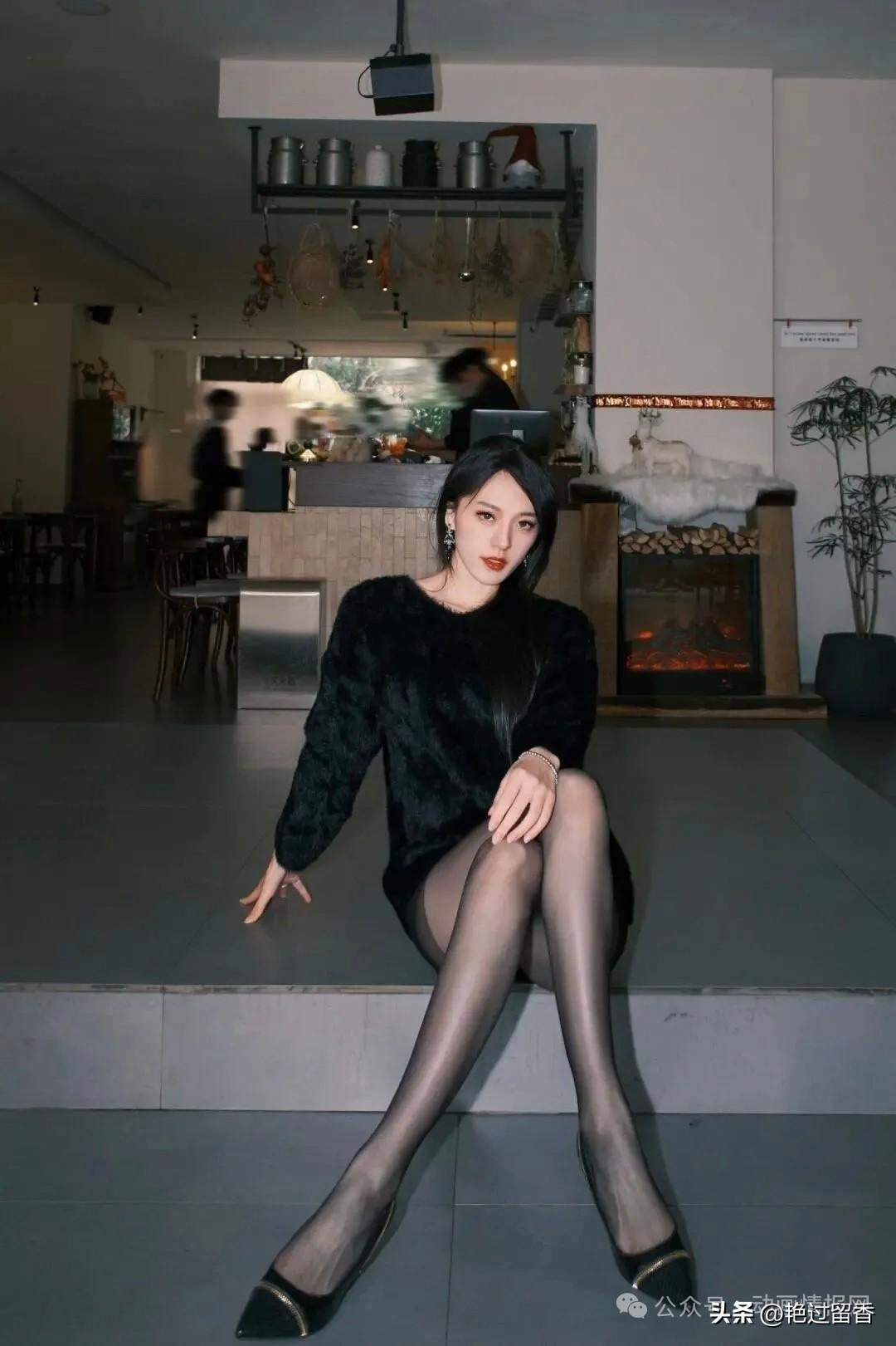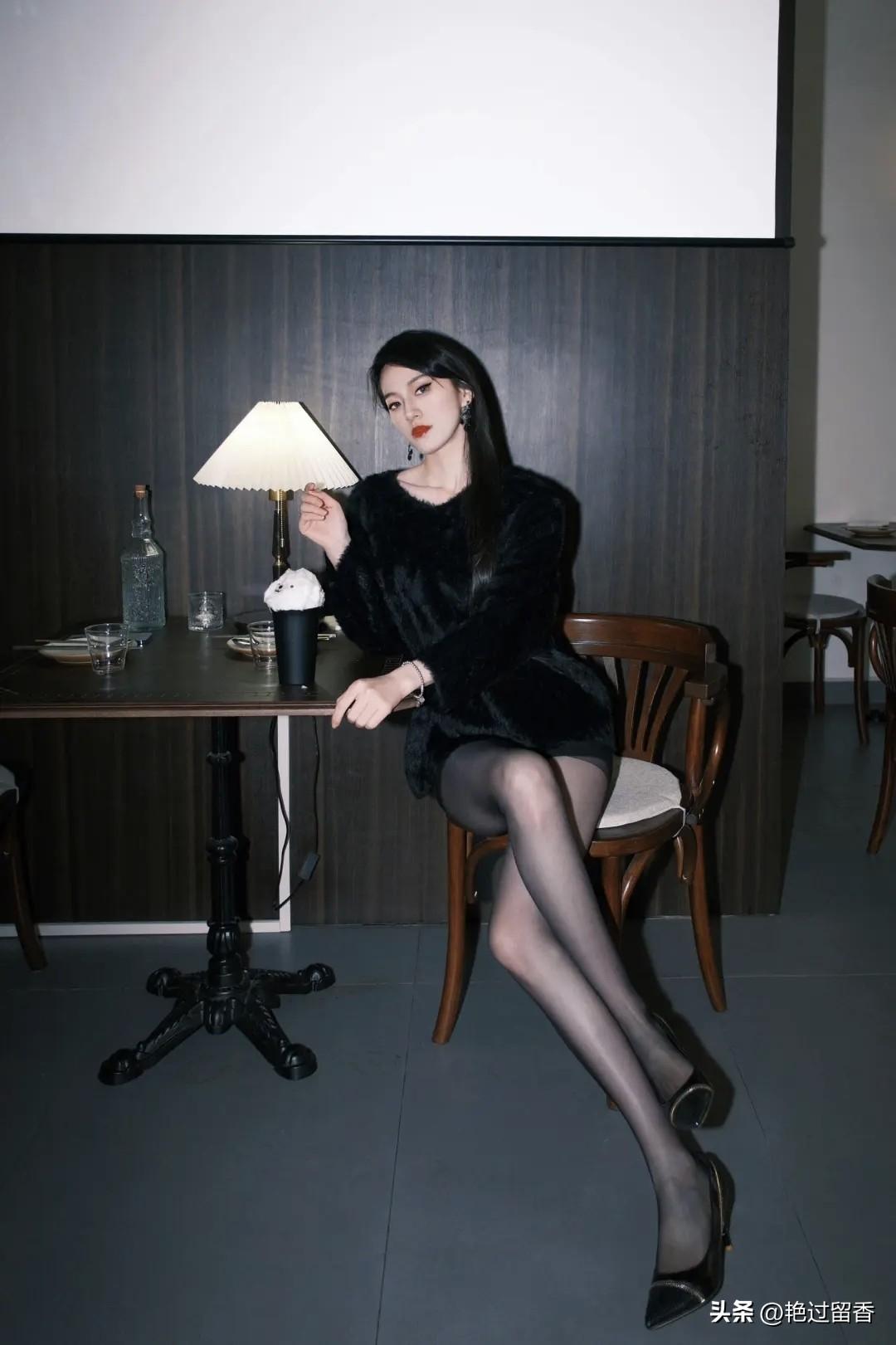 优雅黑丝女郎,复古氛围咖啡馆,时尚穿搭指南!