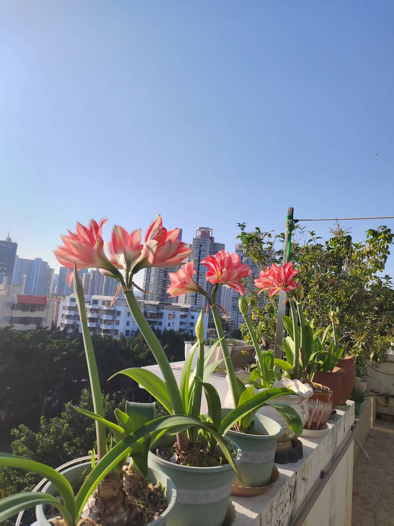 晒晒阳台的一抹春色阳台上的朱顶红开花了,粉色的花儿太美了,另外的盆栽也在生长中!