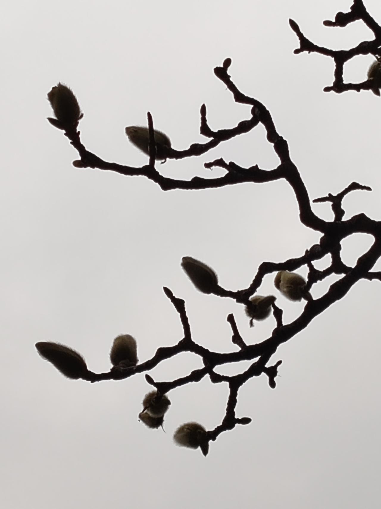 天南地北大拜年《玉兰花蕾画》人人都知道玉兰花的美,可是很少有人知道玉兰花蕾的美。虬枝笔蕾画天为画,神韵百出惊人心。真是横看成岭侧成峰,四面观看各不同。无叶无花偏有韵,让人绕它千百回。玉兰花蕾就是那么受看,那么耐看,那么婀娜,那么多姿,那么美。或许有人说这是出于爱屋及乌的感应,也许吧,玉兰花的美是得到大家公认的,但对玉兰花蕾大家并没有什么感觉。看着含苞待放的玉兰花树,那么灵动,那么飘逸,那么自信,怎么也和爱屋及乌联系不上。那美就来自它本身。它虽然没有玉兰花的香气,也没有玉兰花的色彩,但是它身体里却藏着一股傲气,一股力量和一种神韵。它和秃枝完美结合,在天空给我们绘就了一幅画,一幅美不胜收的天画。感慨吧,大自然的鬼斧神工,感慨吧,它让人的心灵一次次震颤。