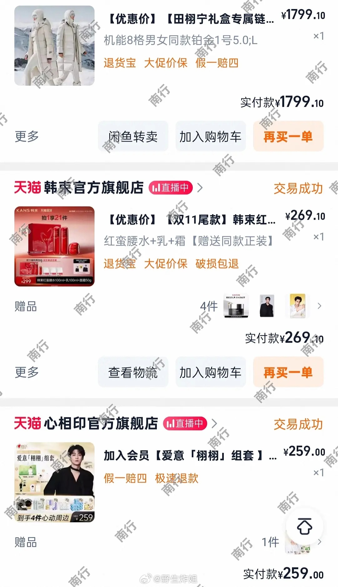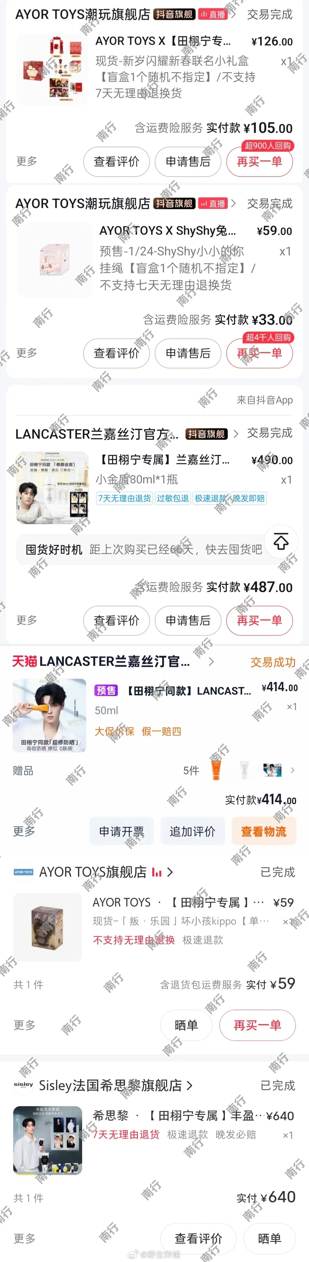 田栩宁的粉丝脱粉晒出来了账单 没有产出没有存货的艺人你买什么商务