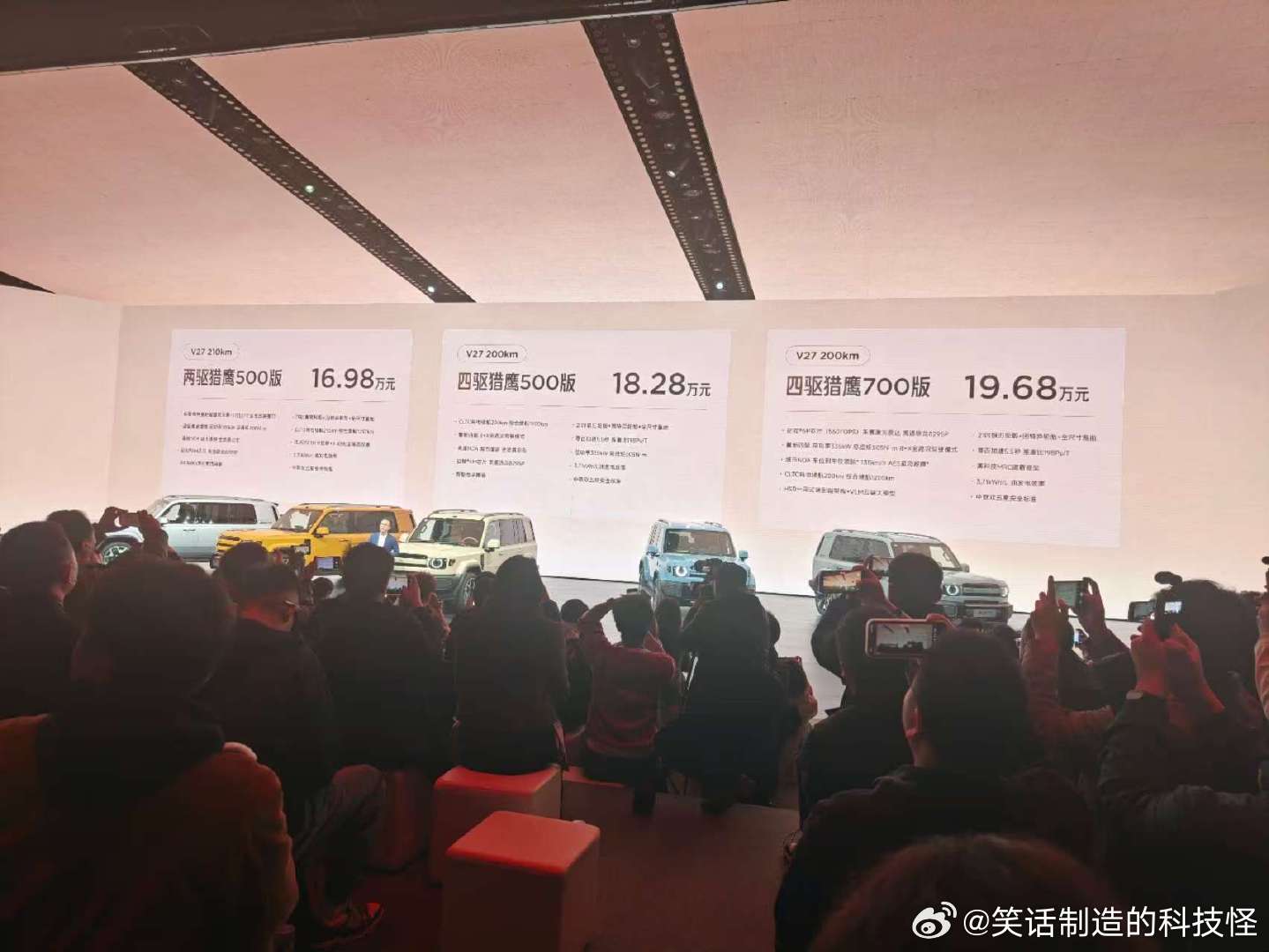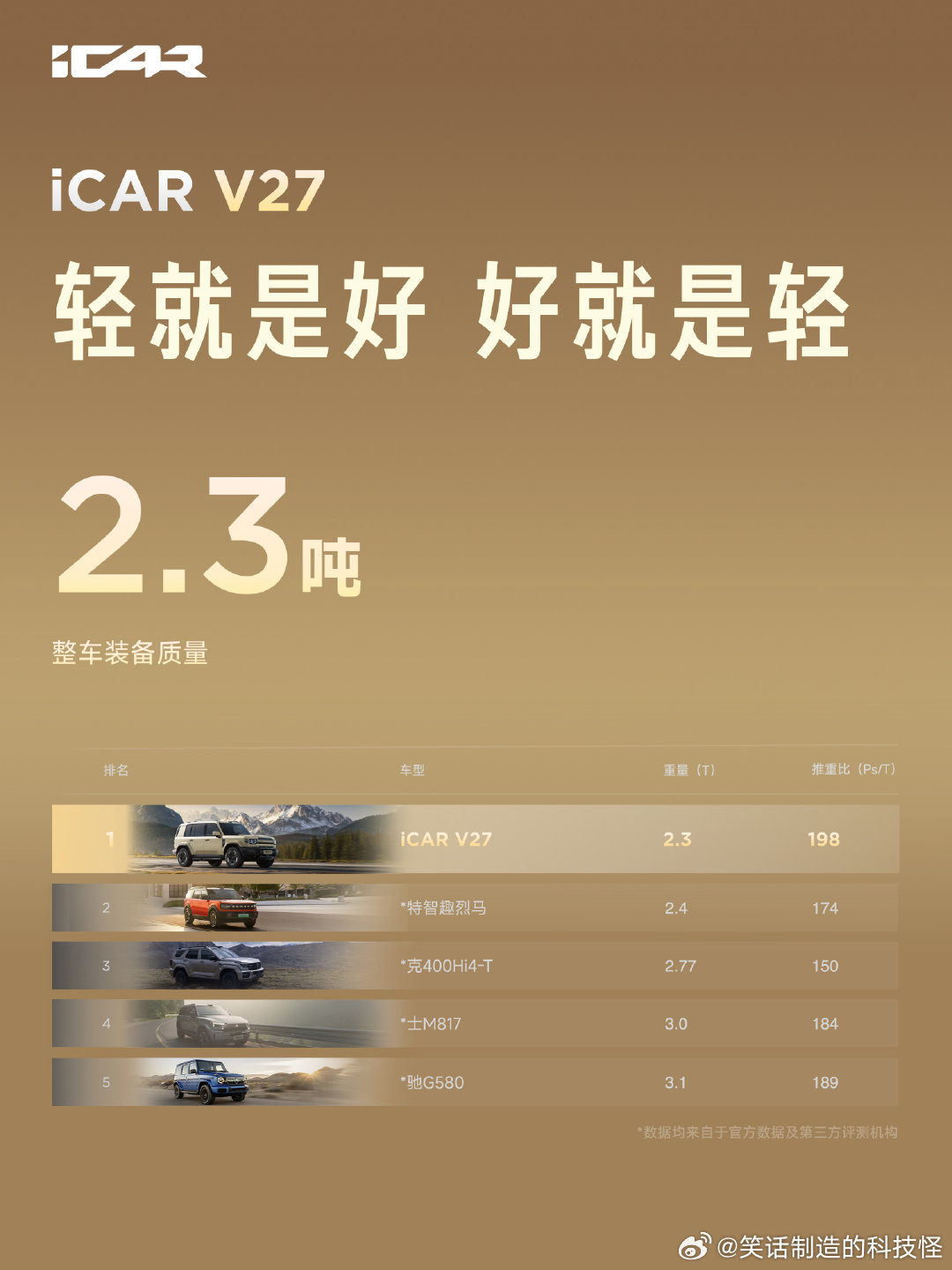整体看下来,这个价位能把越野、智能、颜值都兼顾到的车确实不多。有兴趣可以去店里转转,试试就知道我说的是啥感觉了。V27全能硬派全家都爱 iCARV27全能上市16.98万起(