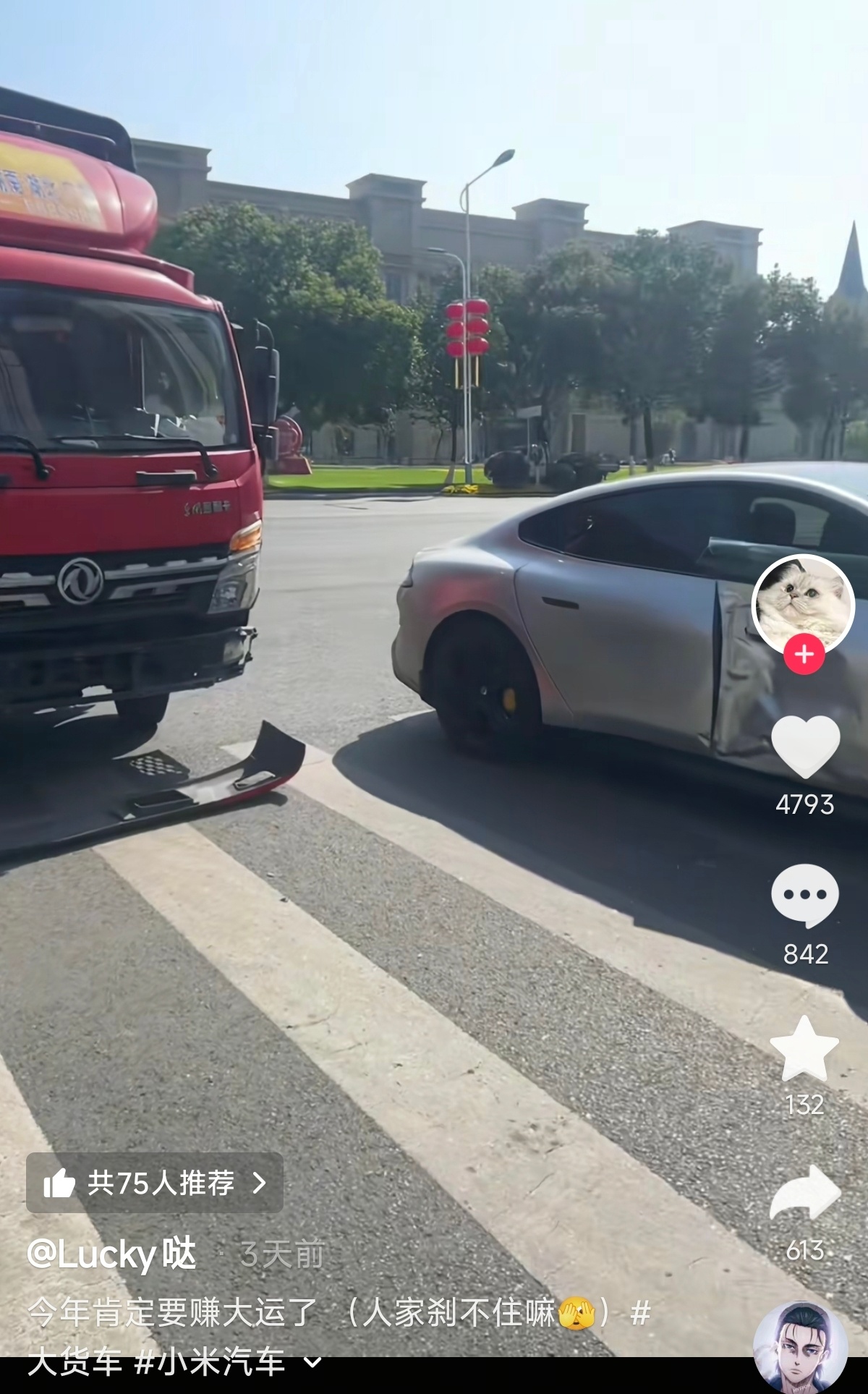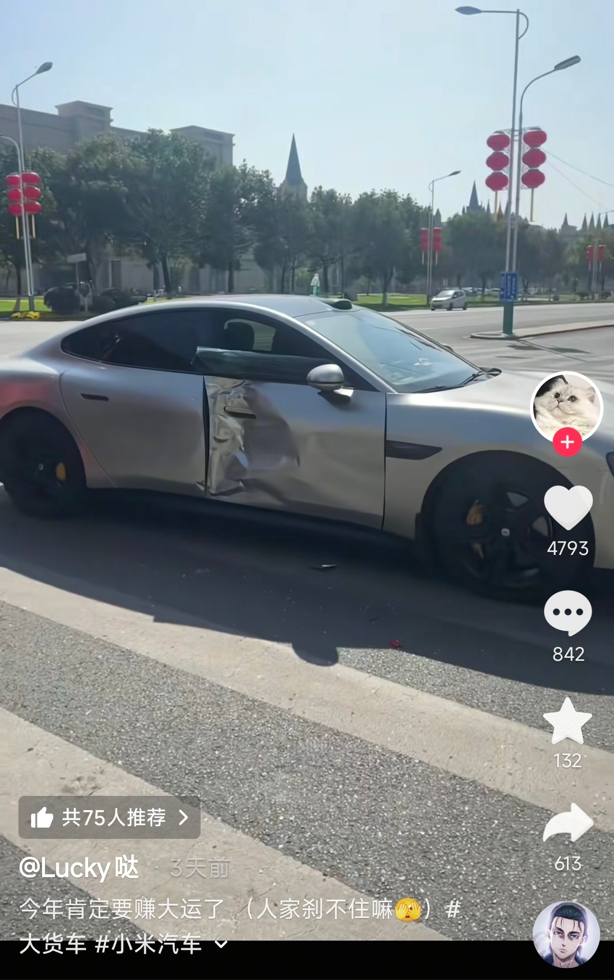 小米SU7被撞了,被什么撞了?被大运撞了……