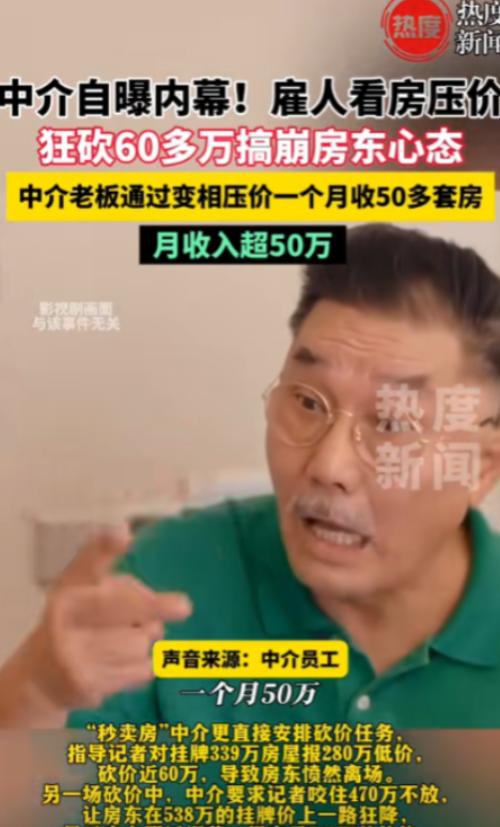 “缺大德了!”上海一房东想以339万元的价格出售房屋,不料,却被中介压到了280万元,砍价近60万元,导致房东愤然离场,事后才知道这都是中介的“套路”,中介花钱雇人来看房子,通过变相压价一个月收50多套房,月收入超50万元,网友:买家卖家两头坑!   最近上海一位房东的遭遇,不少网友看完都怒喊“缺大德了”!这事说起来真让人窝火,房东本来诚心诚意想把房子卖掉,挂牌价339万,没成想遇到了中介的恶心套路,直接被压价到280万,一下砍了快60万,气得房东当场愤然离场。   据报道,这位房东一开始没多想,觉得找中介卖房能省点事,毕竟中介懂行情有客户资源,可他万万没想到,自己从头到尾都被中介蒙在鼓里。   那天中介带了所谓的“买家”来看房,对方一开口就把价格压到280万,还挑三拣四说房子各种不好,不管房东怎么解释,对方都寸步不让,一副“就这个价,不卖拉倒”的态度。   房东本来就没打算漫天要价,心里也有合理的议价空间,但一下被砍近60万,换谁都接受不了。   看着对方毫无诚意的样子,再加上中介在一旁煽风点火,说现在市场不好,能有人出价就不错了,房东越想越气,直接转身就走,这买卖也没法谈了。   直到事后,房东才从别人口中得知,这根本不是什么真实买家,全是中介的套路,中介为了拿到低价房源,专门花钱雇人来假扮买家,这些人每天的任务就是跟着中介去看房,故意报低价挑毛病,目的就是打垮房东的心理防线。   说白了,中介这么做,一方面是为了完成公司要求的带看指标,他们每天得带够15组客户看房,雇人来凑数最省事,另一方面,也是最关键的,就是通过这种变相压价的方式,低价收房,再转手高价卖出,赚中间的差价。   有中介自己透露,他们老板靠这一套路,一个月能收50多套房,月收入直接超过50万元,这事被曝光后,网友们彻底炸了锅,纷纷吐槽中介是“买家卖家两头坑”。   有网友说,房东本来想卖个合理价格,结果被中介套路压价,亏得血本无归;而真实的买家,又可能被中介以高价忽悠,花冤枉钱,中介夹在中间,靠着信息差玩套路,赚着黑心钱,实在太过分。   其实仔细想想,这种套路能得逞,核心就是买卖双方的信息不对称,房东不知道房子的真实市场价,买家也搞不清房源的实际情况,所有信息都被中介攥在手里,才给了他们演戏的空间。   有懂行的人说,中介这种行为已经涉嫌欺诈,违反了诚信原则,要是房东真的被忽悠着低价卖了房,是可以维权的。 目前,涉事中介已经紧急自查,相关部门也已经介入约谈,希望这次能好好整治一下中介行业的乱象,别再让这种黑心套路坑害更多买卖双方。   毕竟卖房买房都是人生大事,谁也不想被人当傻子耍,中介本该是促成交易的桥梁,而不是靠套路赚黑心钱的骗子。