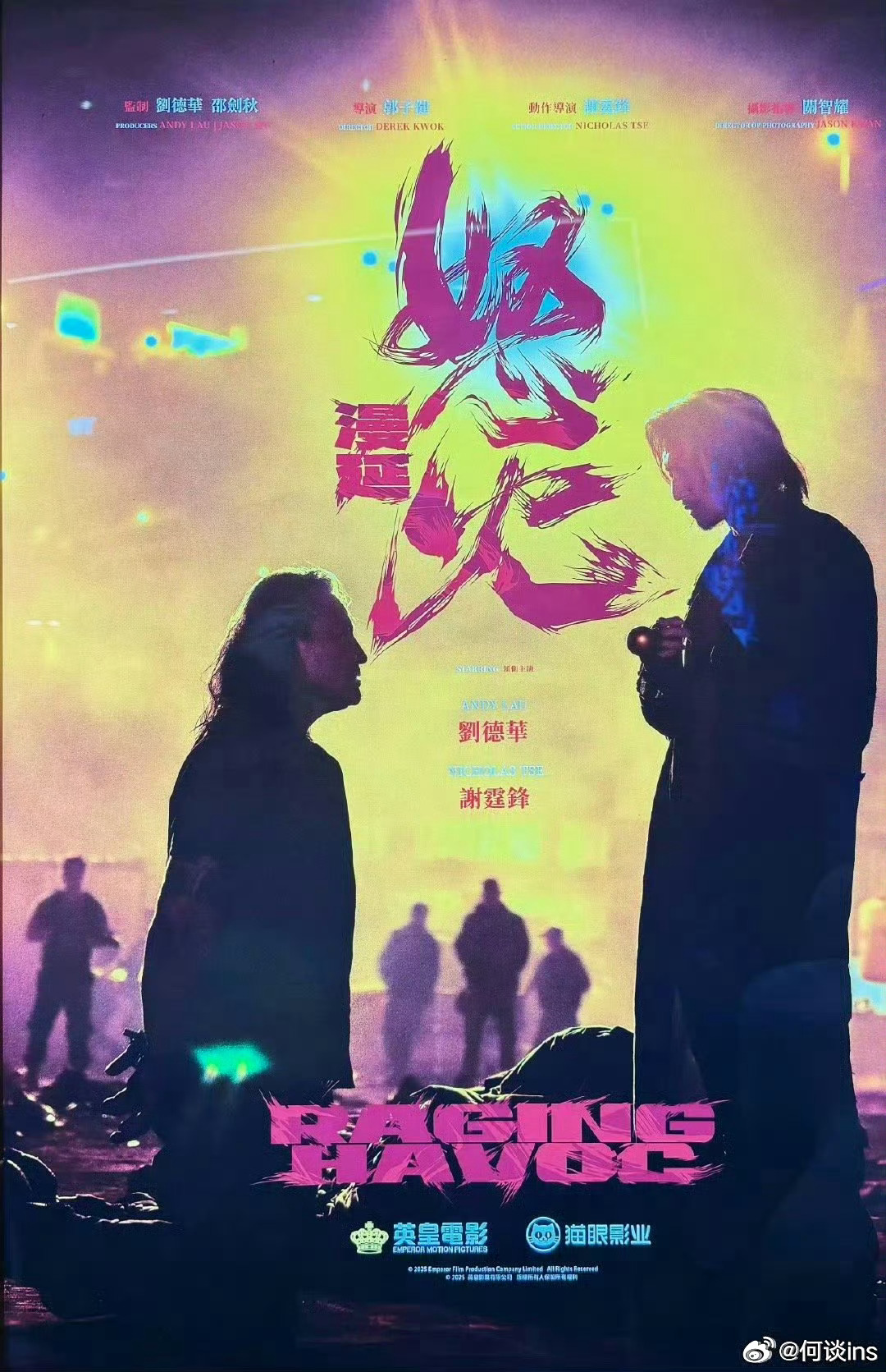 也有怒火重案老熟人杨天宇、何佩瑜、胡子彤、张文杰还有许冠文、吕良伟、陈家乐、黄德斌刘德华监制,郭子健执导,谢霆锋任动作导演梗概:代表香港的警队行动总指挥官方荣宙(刘德华饰)在警队声誉达到巅峰之际,迎来了一场职业与人生的双重危机。而制造这一切危机的,竟是多年未见的阿秋(谢霆锋饰)。再次相遇,阿秋变成至恶罪犯将香港陷入巨大危机。方荣宙坚定职责摒弃所有,不向犯罪低头。命运殊途的两人被迫站在对立面,在一次次交战中勾起回忆,又燃烧怒火,殊不知这一切都在黑暗势力的操控之中……