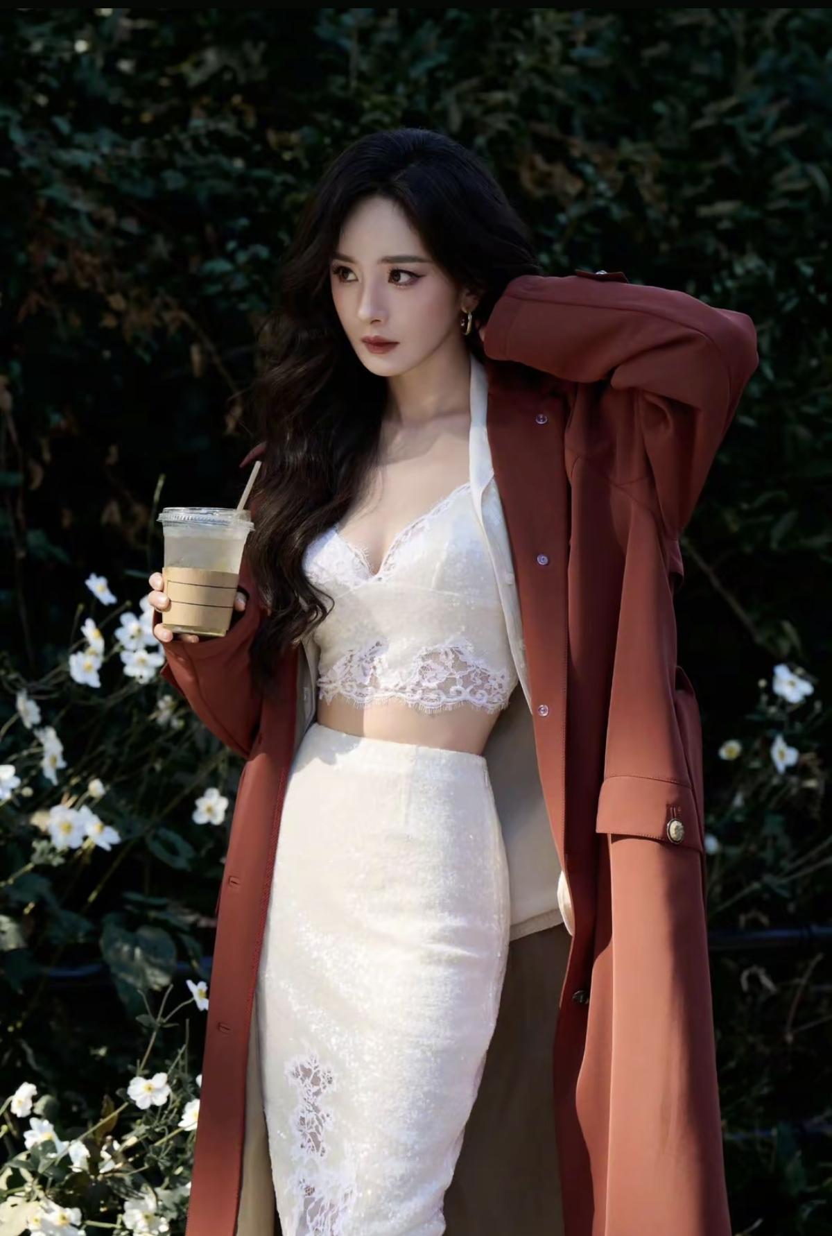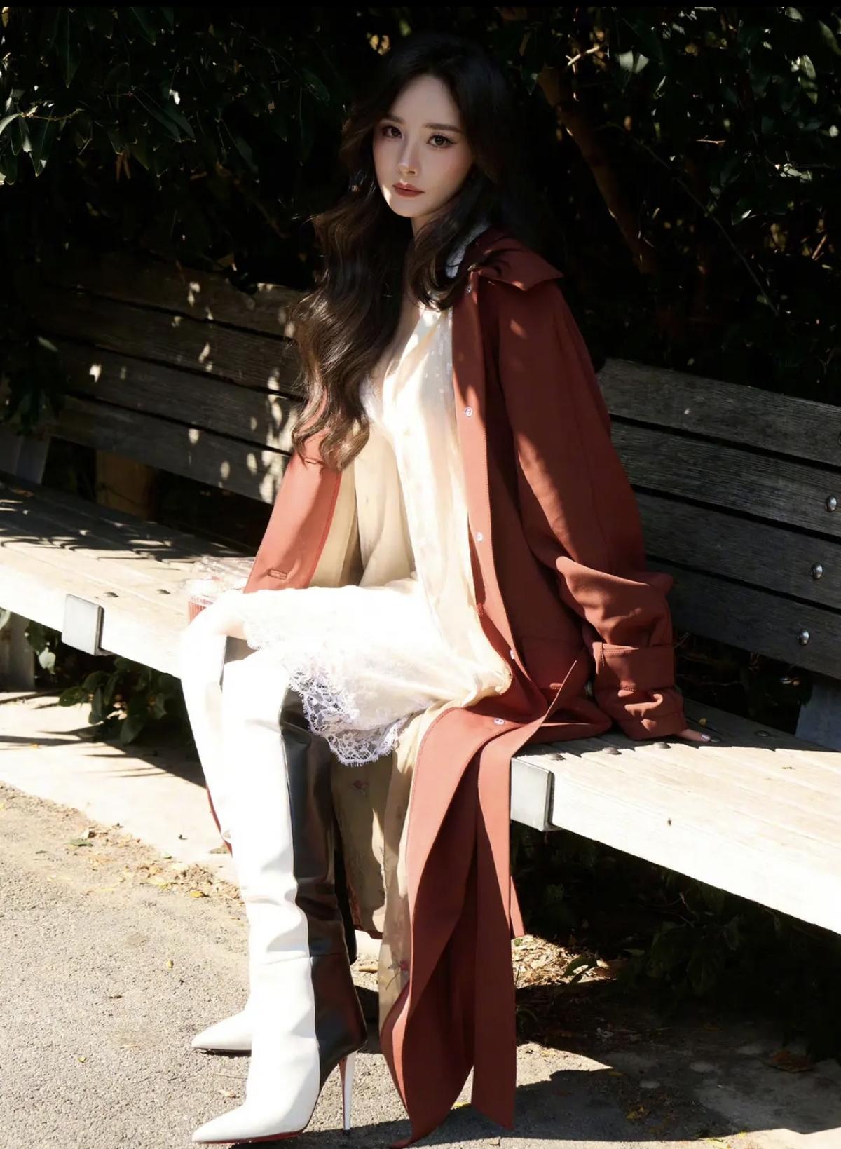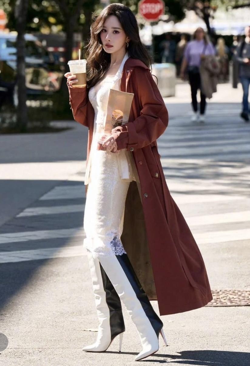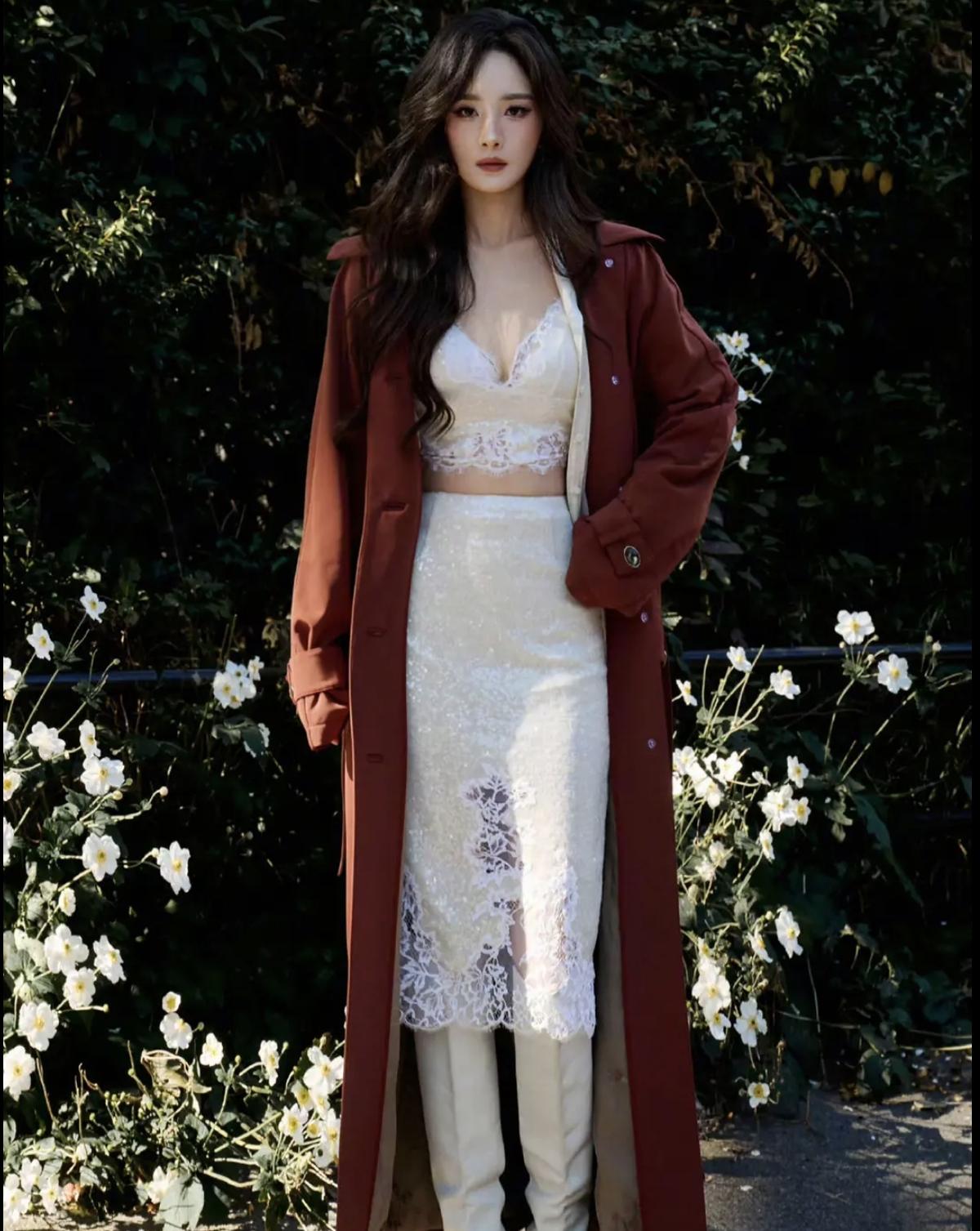 杨幂这套街拍太会了!酒红长风衣气场拉满,内搭蕾丝吊带裙又甜又欲[赞][给力]娱乐