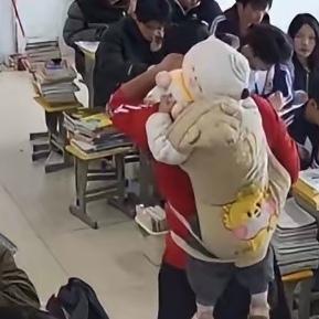 最近云南昭通一段教室视频火了:一位老师站在讲台上讲课,脚边讲桌下竟蜷缩着一个一岁多的娃娃!四十分钟里,孩子不哭不闹,偶尔探出小脑袋偷瞄爸爸,又乖乖缩回去——这幕让无数网友直呼“看哭了”! 原来訾老师家中老人刚去世,妻子又在异地教书,一岁多的孩子无人照看。请过假、试过把娃单独留在办公室,可孩子哭得撕心裂肺,课根本没法上。走投无路之下,他只能把讲台下不到一平米的空间,变成孩子的“秘密基地”。 孩子困了,他就用背带把娃勒在背上继续讲课;学生下课,孩子们围过来逗娃玩——连学校都默默发动老师帮忙照看。有人说他“不顾家”,可老人刚下葬、妻子远在百里之外,换作是你,会怎么选? 你觉得訾老师该被批评还是理解?如果是你,会如何平衡家庭和工作?来留言说说你的看法,点赞收藏,一起为这份“生活的重量”点个赞!老师带娃上课 责任与担当