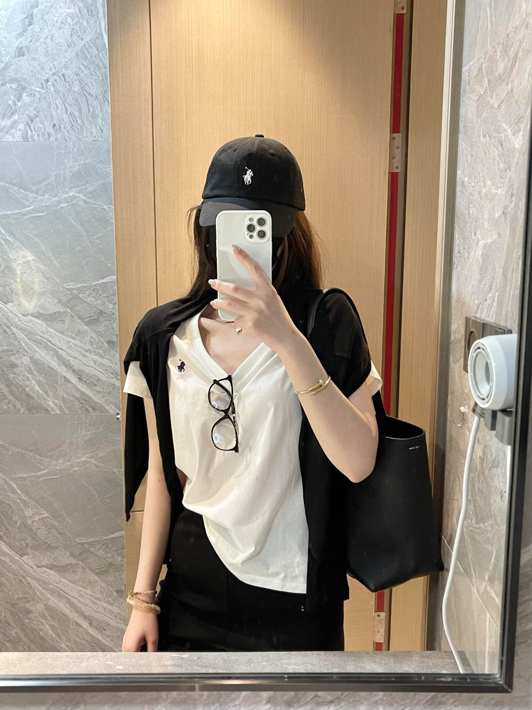 黑白的淡人感让我好着迷💸v领好显瘦 淡淡的高知感太爱了配了简单的绵羊毛针织小开