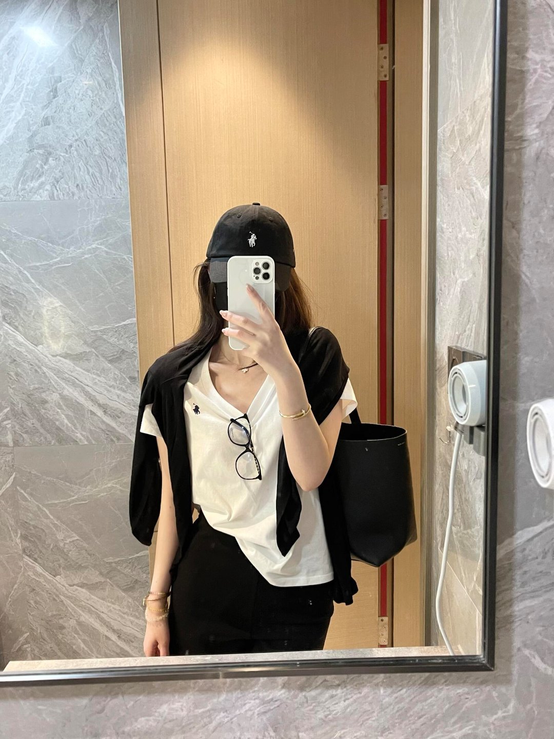 黑白的淡人感让我好着迷💸v领好显瘦 淡淡的高知感太爱了配了简单的绵羊毛针织小开衫简单舒适
