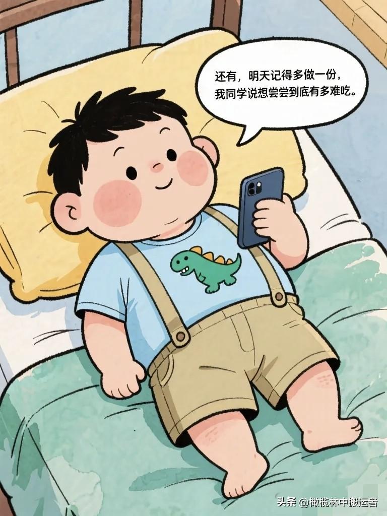 搞笑漫画:夜十一点姐姐房间的灯还亮着,弟弟发来微信: “姐,睡了吗?” “还没,怎么了?” “我想说…你今天做的菜真的很难吃。”
