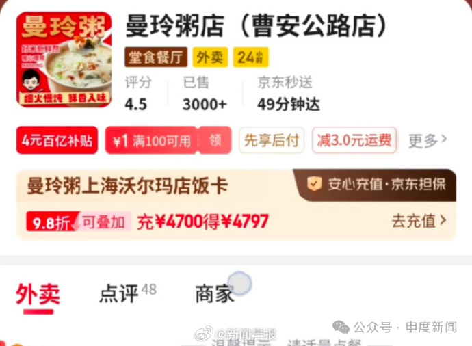 记者实地探访的第一站,是位于四川北路1661号地下一层的曼玲粥店。据京东外卖平台的公开信息,这家店是一家打有“堂食餐厅”标识,具备堂食服务的餐饮店。