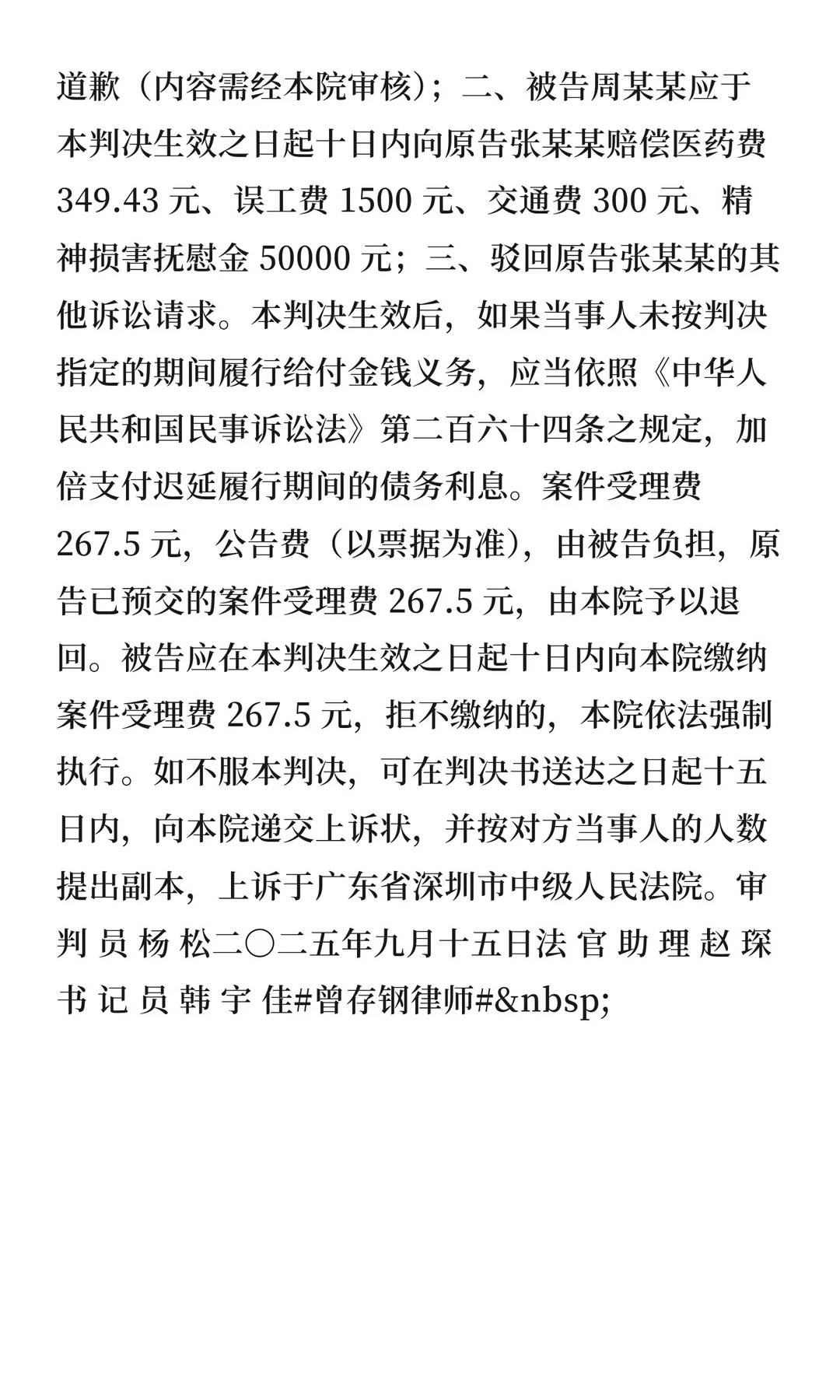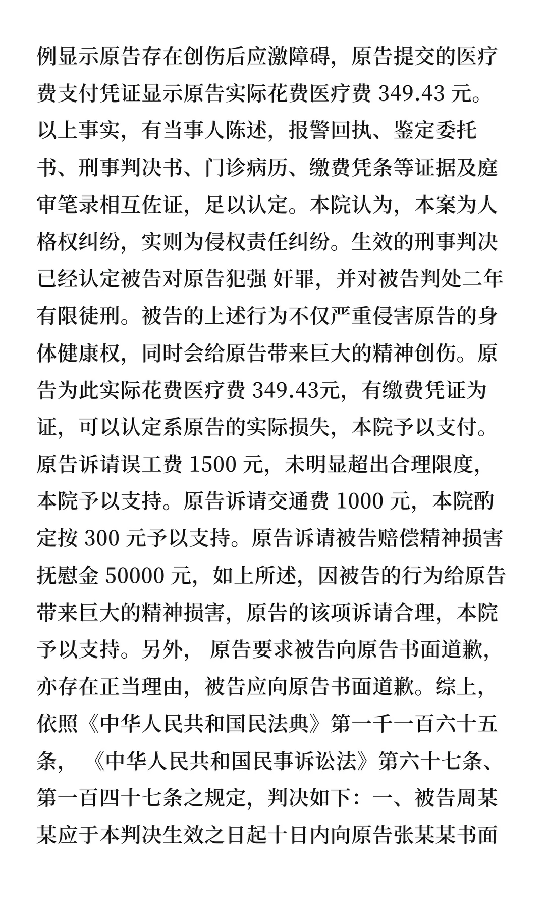 曾存钢律师胜诉案例:性侵他人应给予书面道歉和合理赔偿!曾存钢律师代理性侵维权案,法院判决被告赔偿原告医药费、误工费、交通费及精神损害抚慰金,并要求书面道歉,支持原告主张。