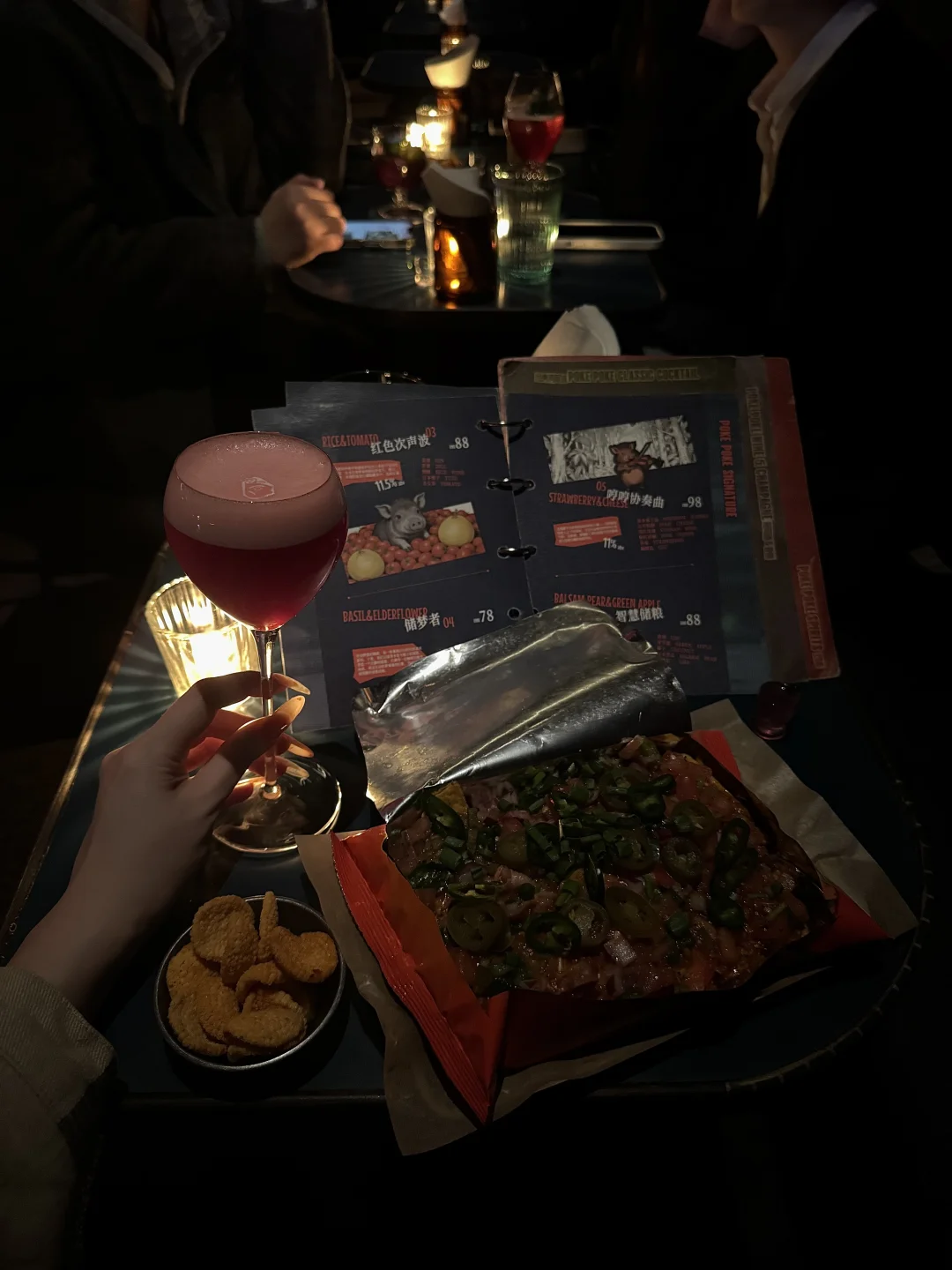 好久没有喝得这么畅快尽兴了 餐食酒水口味都在线 放心闭眼进!! 点了一杯时光胶片🎞️酸甜莓果风味的漂亮酒🍸 酸酸甜甜的果香+淡淡的木质香 女孩子会喜欢~ - 最重要的是他家的餐食水准不亚于餐厅 玉米片jujuju好吃🌽 真的有惊艳到我!! 牛肉沫+番茄碎+洋葱碎做成牛肉酱 蘸着脆脆的玉米片你就吃吧一吃一个不吱声! 冲着玉米片下次也会来的程度😭😭。。。