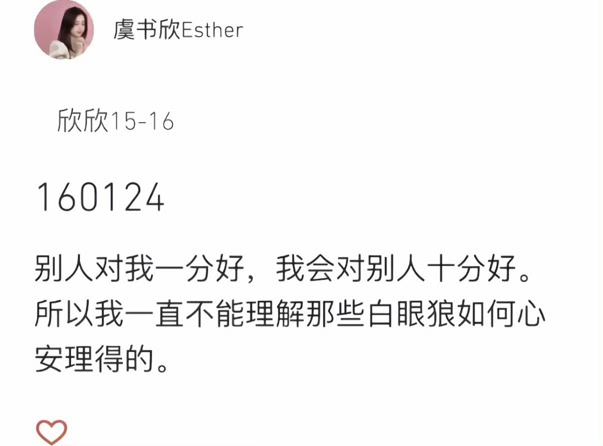 时间果然能让人看清一个人。我只知道虞书欣对朋友永远都是真诚底色另外 道不同,不相为谋搞事业的女艺人不和道不同的男艺人玩哈