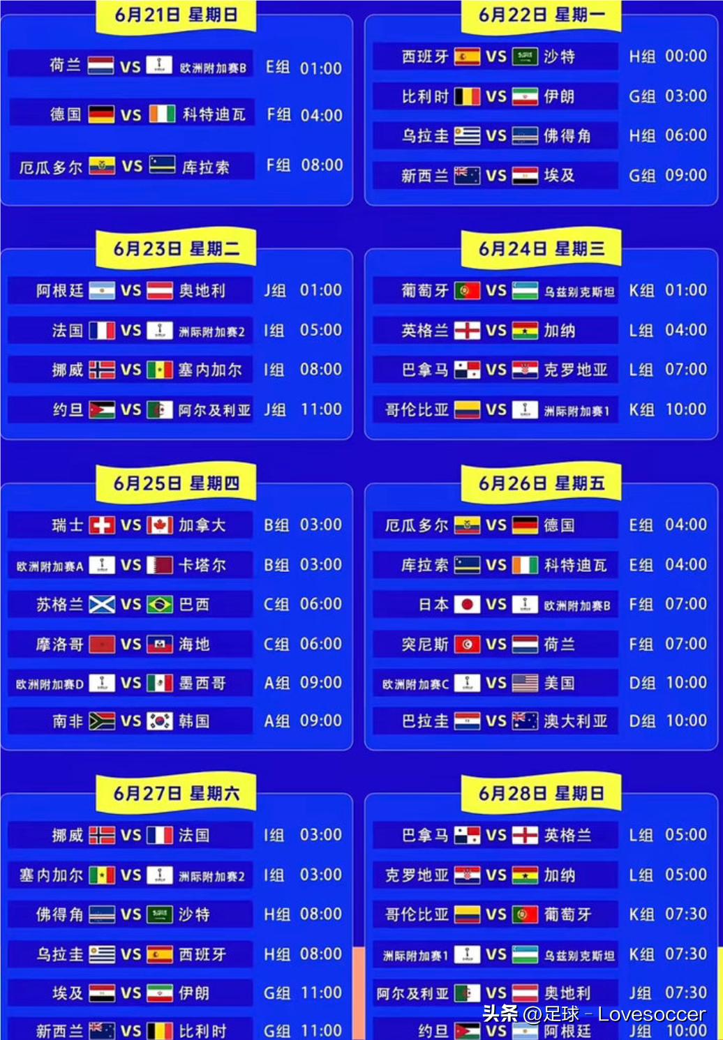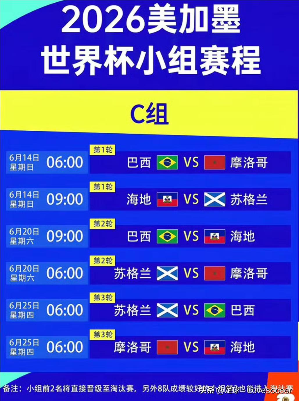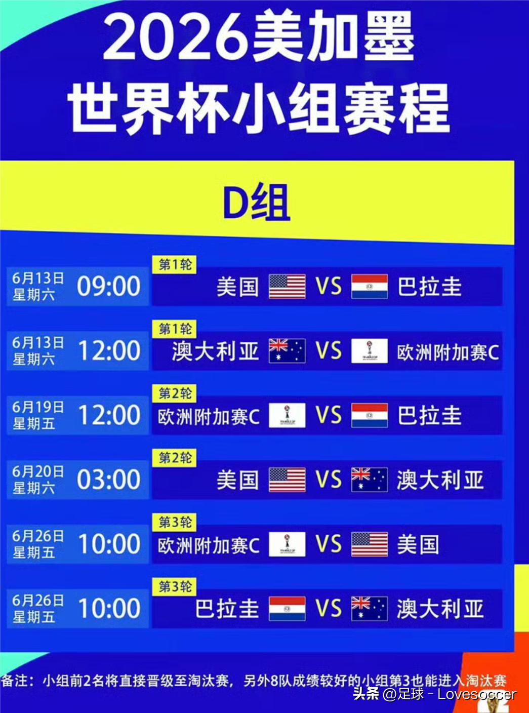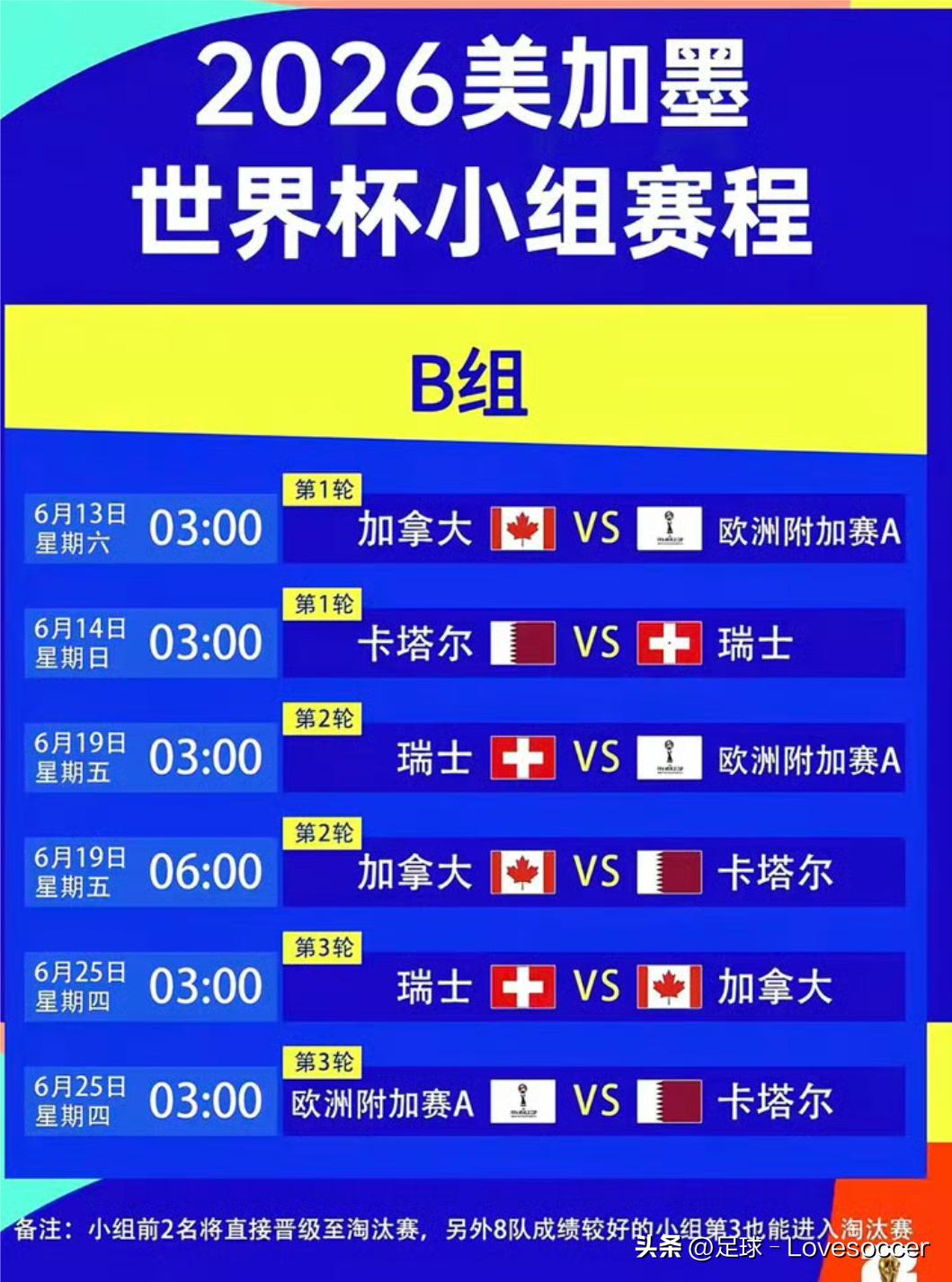 2026年6月11号到7月19号,大家盼了好久的男足世界杯就要开打了,美国、加拿大、墨西哥三个国家一起办。这也是世界杯头一回扩到48支球队,规模直接拉满。 小组赛总共72场球,咱们这边看球的时间基本在北京时间凌晨零点到中午12点,不用熬大夜等比赛,对中国球迷特别友好。