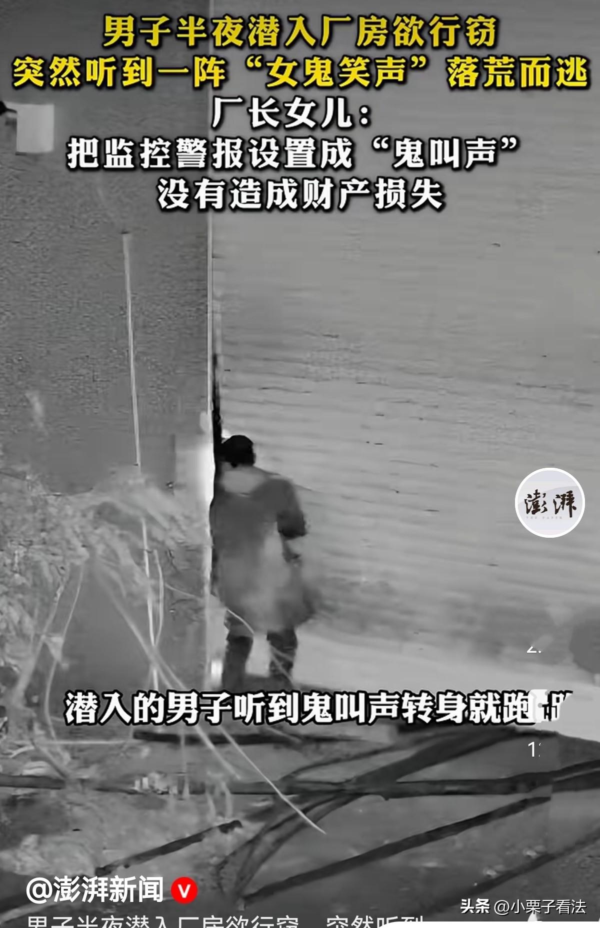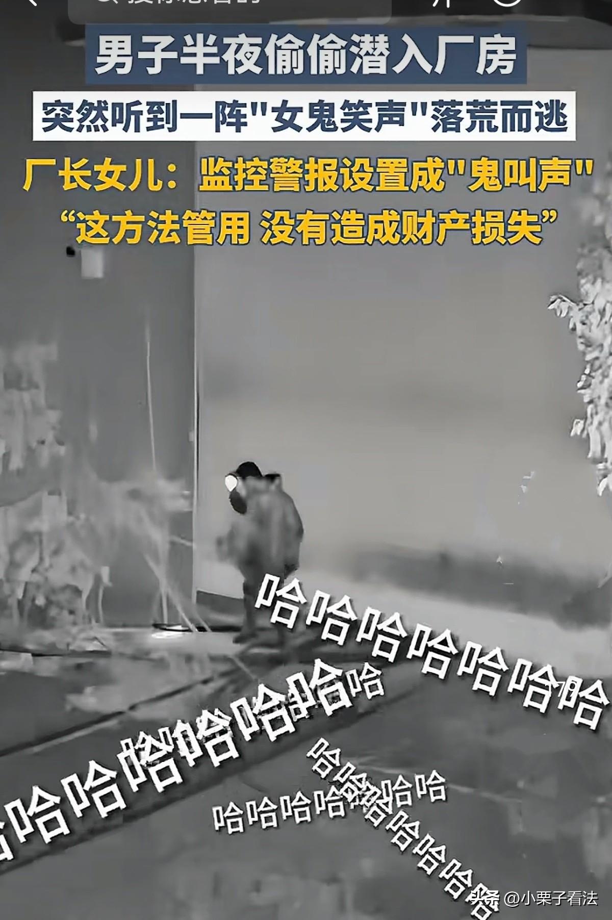 笑死个人了!湖南长沙,一男子潜入厂房欲行偷窃,突然院内传来凄厉又诡异的女鬼狂笑声,他吓得屁滚尿流,顾不上偷东西猖狂逃窜。原来是厂长女儿为防被偷盗安装的监控,特别设置鬼叫声报警。网友:厂长女儿这招太绝了,未造成财物损失! 俗话说,不做亏心事,不怕鬼敲门。 3月12日,一名心怀不轨的男子趁着夜深人静,偷偷摸摸潜入厂区想要伺机作案,没想到还没来得及动手,就被一阵凄厉又诡异的女鬼狂笑声吓得魂飞魄散。 他连滚带爬地落荒而逃,全程不仅没偷走任何东西,反倒把自己吓得不轻。 而这让人忍俊不禁的一幕,正是厂房厂长女儿的“神操作”。 事发在3月12日的深夜,街上早已没了行人,四周一片漆黑寂静,连风吹过树叶的声音都显得格外清晰。 这家位于城郊的厂房平日里存放着不少生产材料和设备,虽然有人看管,但夜间依旧是小偷觊觎的目标。 就在万籁俱寂的时候,一个鬼鬼祟祟的身影出现在了厂房外围。 男子四处张望,确认周围没有灯光、没有路人,也没有巡逻人员后,压低身子,小心翼翼地翻越围栏,悄无声息地溜进了厂区。 他脚步放得极轻,心里打着算盘,想着赶紧找到值钱的东西,速战速决离开这里。 可他刚走进厂房区域,还没来得及靠近存放物资的仓库,一阵突如其来的声音,瞬间刺破了深夜的宁静。 那是一声尖锐又阴森的女鬼笑声,幽幽的、冷冷的,在空旷漆黑的厂区里来回回荡,听得人头皮发麻、后背发凉。 男子本来就做贼心虚,心里一直提着一口气,时刻担惊受怕被人发现。 这突如其来的诡异笑声,直接击穿了他最后的心理防线。 他只觉得浑身汗毛倒竖,双腿一软,哪里还顾得上分辨声音是从哪里来的,脑子里只剩下一个念头:撞鬼了! 他连回头看一眼的勇气都没有,尖叫着转身就跑,慌不择路地冲出厂区,连滚带爬地消失在夜色里,全程连一件物品都没来得及触碰,更没有造成任何财产损失。 事后,厂房厂长的女儿谭女士看到监控,忍不住笑出了声。 原来,为了守护厂区安全,谭女士特意在厂门口和关键位置安装了智能监控警报设备。 这款设备能够自动识别闯入的人体活动,一旦检测到有人非法进入,就会立刻触发警报。 考虑到普通的警报声可能不足以震慑心怀不轨的小偷,谭女士灵机一动,干脆把警报提示音,设置成了这段让人听了毛骨悚然的女鬼笑声。 她原本只是抱着试一试的心态,没想到效果竟然出奇地好,这次小偷深夜潜入,还没实施盗窃,就被这“女鬼笑声”吓得仓皇逃窜,完美守住了厂区的财物安全。 这一幕被监控完整记录下来,看着监控里男子慌不择路的狼狈模样,谭女士又好气又好笑。 她表示,设置这样的警报声,就是抓住了小偷做贼心虚的心理,毕竟心里有鬼的人,最怕听见“鬼叫”。 这件事也让不少网友直呼太聪明、太解气。 其实小偷并非真的怕鬼,而是自己心怀不轨、做贼心虚,一点风吹草动都能让他们惊慌失措。 而谭女士这别出心裁的防盗妙招,不仅成本低、效果好,还闹出了这样一段让人捧腹的小插曲,既守住了财产,又不用正面冲突,堪称最机智的防盗操作。 有人说,胆子这么小怎么在小偷界混? 还有人说,如果把贼吓成心脏病或吓死!其家属会不会追责?厂里会赔偿吗? 《刑法》第16条规定:行为在客观上造成损害,但不是出于故意过失,而是不能预见、不能抗拒的原因引起,不认为是犯罪。 《刑法》第20条规定:对正在进行的盗窃不法侵害,采取防卫行为,未明显超过必要限度,不负刑事责任。 谭女士无杀人、伤人故意,也无法预见小偷会被吓死。鬼叫声是防盗警报,非故意伤害手段,未超过合理防卫限度。 如小偷真的吓死,那也是自身心脏病、极端恐惧加非法入室,属自陷风险、意外事件。 只要你不是故意“设陷阱吓死小偷”,只是正常装监控、设鬼叫警报防盗,小偷如被吓死,声音与死亡无必然、直接因果关系,不构成侵权。 谭女士既不用坐牢,也基本不用赔钱。 这也印证了那句老话:身正不怕影子斜,做了亏心事,就算没有真的鬼,也会自己吓自己! 对此您怎么看?