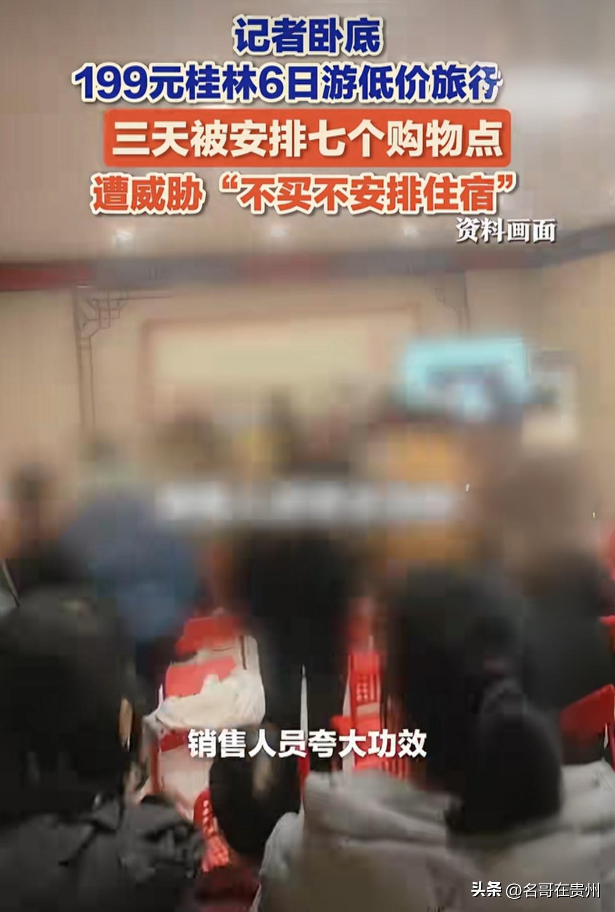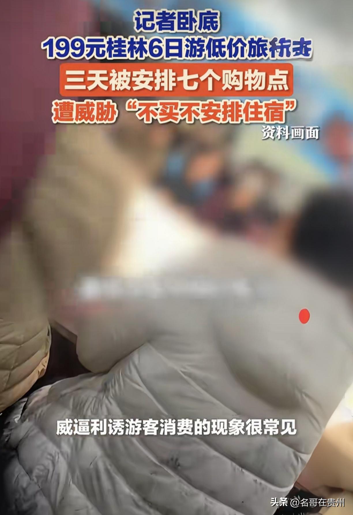 199元游桂林6天?记者暗访抖出黑幕:不买东西不给地方睡! 说出来你们可能不信,199块钱能干啥?也就是下顿馆子的事儿。可有人告诉你,这钱能去桂林玩6天,还包吃包住,你信吗?天上不会掉馅饼,掉下来的要么是铁饼,要么是陷阱 。 最近极目新闻的记者卧底了一个从河南濮阳出发的“199元桂林6日游”旅行团,不看不知道,一看气得肝疼。参团的九成都是啥人?都是咱农村的叔叔阿姨、大爷大妈,头发都白了,有的还拄着拐杖,就冲着“便宜实惠”想出去见见世面 。结果呢?这哪是去旅游啊,简直是去“受罪”加“被宰”! 说是六日游,其实三天都在赶路和购物。每天天不亮,凌晨五点多就被薅起来,拿着两个馒头一包榨菜就上车了 。景点?走马观花看一眼就算完。真正的“重头戏”全在购物店里,六天塞进去七八个购物点,一待就是两三个小时,不买?门都没有! 更过分的是那些销售,为了卖货脸都不要了。推销驼奶的时候敢吹“长期喝不得癌症” ;卖牛皮席子的更离谱,说睡在上面能把风湿病睡好,藿香正气水都没这么神啊!最可恶的是,有老人实在掏不出钱,导游直接甩狠话:“不买东西,今晚没地方住!” 咱爸妈那一辈人,老实巴交了一辈子,哪受得了这个威胁?只能咬着牙把养老钱掏出来,买那些几百块一床的“三无产品”夏凉被 。 这事儿闹大后,记者把情况捅给了职能部门。3月15号,桂林当地连夜通报,直接对涉事的旅行社、导游和7家购物店立案调查了 。我就想问问这些黑心商家:199块钱买不来你们一顿饭,却能买走一个老人的良心,你们半夜睡得踏实吗? 大家赶紧把这条视频转发到家庭群!都说说,你老家那边有没有这种“低价游”在拉人?评论区曝光它,咱们帮爸妈避避雷! 作者申明:内容取材于网络,根据极目新闻2026年3月14日报道《卧底“桂林六日游”低价旅行团:游客清晨6点被带进购物点,遭威胁“不买不安排住宿”》等综合整理 。