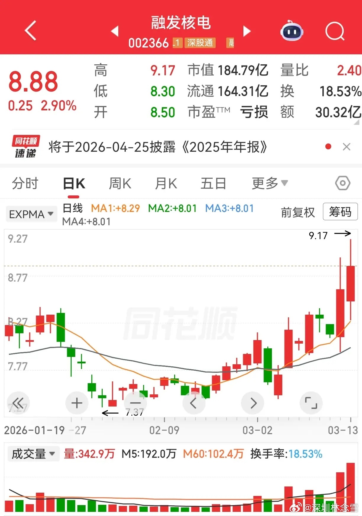 融发核电15天11阳,近期放量滞涨,多空分歧加大,偏震荡回调。