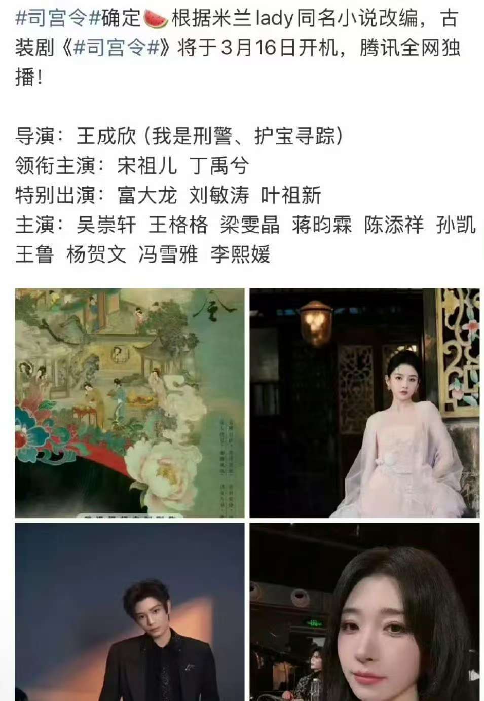 司宫令今天正式开机司宫令丁禹兮宋祖儿番位司宫令3.16正式开机,丁禹兮和宋祖儿按