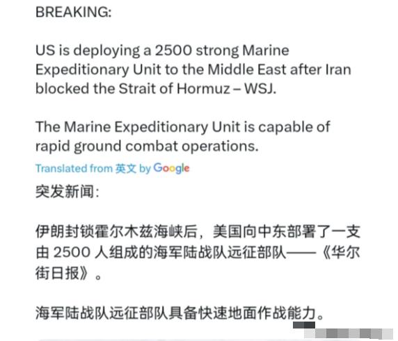 美国终于忍不住了!这下有好戏看了!美国正式派出地面部队!3月13日,根据华尔街日报报道,在伊朗封锁霍尔木兹海峡后,美国已经向中东部署了一支2500人的海军陆战队远征部队。美媒称,海军陆战队远征部队能够进行快速地面作战行动。很显然,在霍尔木兹海峡仍被伊朗卡住的情况下,美国终于是忍不住了。 美国的这一动作,当然是战争的重大升级。说白了,这地方就是全球能源的“咽喉”,咱们平时加的油、用的化工产品,很多都得靠这条海峡运输。根据美国能源信息署的数据,2024年通过这里的石油流量日均约2000万桶,占全球海运石油贸易总量的四分之一以上,还有全球五分之一的液化天然气也从这过,其中大部分都运往亚洲,咱们中国更是这里最大的单一原油接收国,占了海峡原油流量的37.7%。 伊朗之所以敢封锁这条海峡,底气就在于它的地理位置——海峡最窄处才33公里,伊朗靠着岸就能实现管控,不用出动大型军舰,仅凭小型巡逻艇、水雷和无人机,就能让这条航道陷入瘫痪。 而且自从2月28日美以对伊朗发动军事打击后,伊朗就正式关闭了海峡,虽然之后表示允许部分国家船只通行,但核心控制权还是在自己手里,这相当于直接掐住了全球能源的“命门”,美国怎么可能坐得住? 这次美国派出的2500人海军陆战队远征部队,可不是来摆样子的。按照五角大楼的说法,这支部队能快速开展地面作战,再加上之前已经在中东部署的军舰和其他兵力,美国的意图很明显:要么逼伊朗解除封锁,要么就直接用武力打通海峡。 但伊朗这边也丝毫没怂,就在美国宣布部署部队的前一天,伊朗最高国家安全委员会秘书拉里贾尼就发文警告,说美国靠几条推文赢不了战争,伊朗会让美国为自己的误判后悔,伊朗伊斯兰革命卫队指挥官还声称,已经摧毁了美国在中东70%的军事基地,虽然美方没回应,但也能看出伊朗的强硬态度。 可能有人会问,美国真的敢跟伊朗打全面战争吗?其实大概率不会,双方现在都是“极限施压”,没到鱼死网破的地步。 美国虽然军事实力强,但在中东的美军基地早就成了伊朗的目标,卡塔尔、科威特、巴林等地的美军基地,最近频频遭到伊朗的导弹和无人机打击,美军甚至一度把舰艇和战机撤离到距海峡1000公里外的地方,可见美国也怕陷入长期消耗战。 而伊朗虽然强硬,封锁海峡也能重创全球能源市场,但这也会反噬自己——伊朗本身也靠石油出口赚钱,长期封锁只会让自己的经济雪上加霜,还可能陷入外交孤立。 美国在中东有19处军事基地,其中8处是永久性的,这些基地原本被一些国家当成“保护伞”,可现在却成了“危险源”,只要伊朗反击,这些驻有美军基地的国家就会被波及,航班、能源设施都受影响,还要承担巨额的基地保障费用。 最近已有不少中东国家开始反思,与其依赖美国的保护,不如自己搞安全协同,沙特甚至还和巴基斯坦签署了共同战略防御协议,可见美国在中东的影响力,已经在慢慢下滑。 而且这场对峙的影响,早就超出了中东地区。现在霍尔木兹海峡周边已经有大量油轮停航,国际保险商取消了该区域的战争险,油价一路飙升,这不仅会让咱们的加油成本增加,还会推高全球通胀,就连化肥出口都受影响,进而影响农产品价格。 联合国秘书长古特雷斯也紧急呼吁,各方赶紧停火谈判,不然局势只会越来越糟,甚至可能引发更大规模的冲突。 说到底,美国和伊朗的这场博弈,核心还是地缘利益和能源控制权的争夺。美国想保住自己在中东的主导地位,保住全球能源通道的控制权;伊朗则想通过封锁海峡,反击美以的军事打击,争取更多的谈判筹码。 现在双方都在试探对方的底线,美国派出地面部队,是想增加施压的筹码,而伊朗的强硬回应,也是不想服软。 接下来的局势到底会怎么走,很难说,但可以肯定的是,只要霍尔木兹海峡的封锁不解除,全球能源市场就没法安稳,中东的局势也会一直处于紧绷状态。 咱们能做的,就是持续关注局势发展,毕竟这场博弈,跟咱们每个人的生活都息息相关。 信息来源:1. 美国《华尔街日报》2026年3月13日报道;2. 新华网2026年3月13日《美媒:美正向中东增派海军陆战队和军舰》《列国鉴丨霍尔木兹海峡,地缘博弈与经济命脉的交织点》