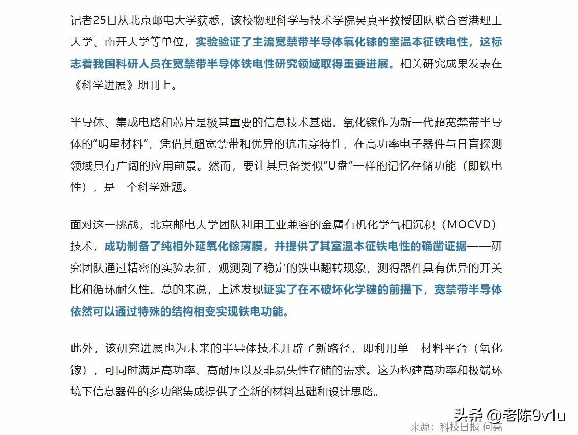 北京邮电大学吴真平团队在氧化镓材料上取得实用突破,保留其耐高温、抗击穿性能并赋予铁电功能、性能超氮化镓,能拓展雷达有效距离:此前国产氮化镓雷达已领先美国,美国F-35换装氮化镓雷达延误至2030年整合,氧化镓有望让国产雷达领先两代。